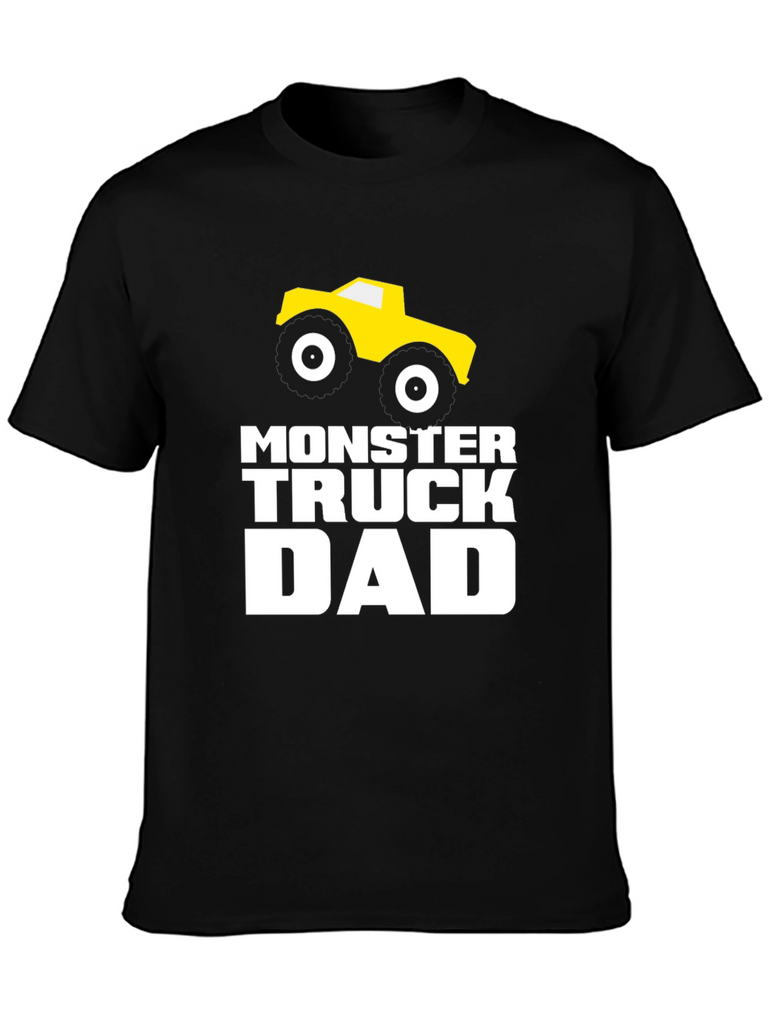 Show your love for monster trucks with this fun and stylish black t-shirt! Featuring a vibrant yellow monster truck graphic above bold, white lettering that reads "MONSTER TRUCK DAD", this tee is perfect for any proud father who's a fan of big wheels and roaring engines. Made from comfortable, breathable cotton, it's ideal for everyday wear, car shows, or casual outings. A great gift for Father's Day, birthdays, or any occasion to celebrate a monster truck-loving dad. Get yours today and let everyone know who's the coolest dad on the block!