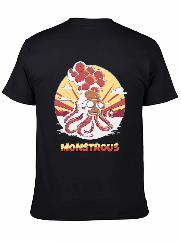Dive into style with this unique Monstrous Octopus graphic t-shirt. The design features a captivating illustration of an octopus wearing a steampunk-inspired diving helmet, set against a retro sunburst backdrop. The vibrant colors and intricate details make this t-shirt a standout piece. Made from comfortable and breathable fabric, this tee is perfect for everyday wear or as a statement piece for casual outings. Show off your unique style and love for the extraordinary with this eye-catching t-shirt.