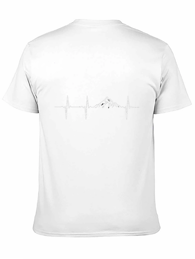 Show your love for the outdoors with this stylish black t-shirt. Featuring a unique heartbeat design incorporating a majestic mountain range, this tee is perfect for hikers, climbers, and nature enthusiasts. The crisp white graphic stands out against the dark background, making it a versatile addition to any casual wardrobe. Made from soft, comfortable fabric, it's ideal for everyday wear or your next outdoor adventure. Grab yours today and wear your passion!