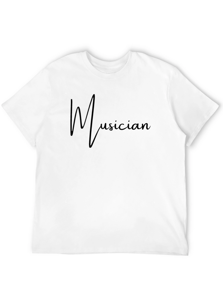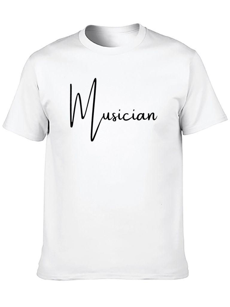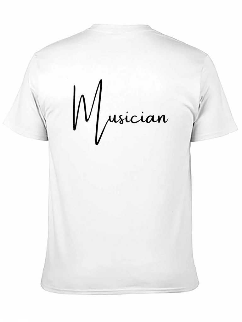 Showcase your passion with this stylish black t-shirt featuring the word "Musician" in a flowing font across the chest. Made from a soft, comfortable fabric, this shirt offers a relaxed fit perfect for everyday wear. The simple design makes it easy to pair with jeans, shorts, or your favorite casual bottoms. Whether you're a musician yourself or simply appreciate the art, this tee is a great way to express your love for music. Wear it to concerts, rehearsals, or just while relaxing at home. It's a must-have for any music enthusiast's wardrobe.