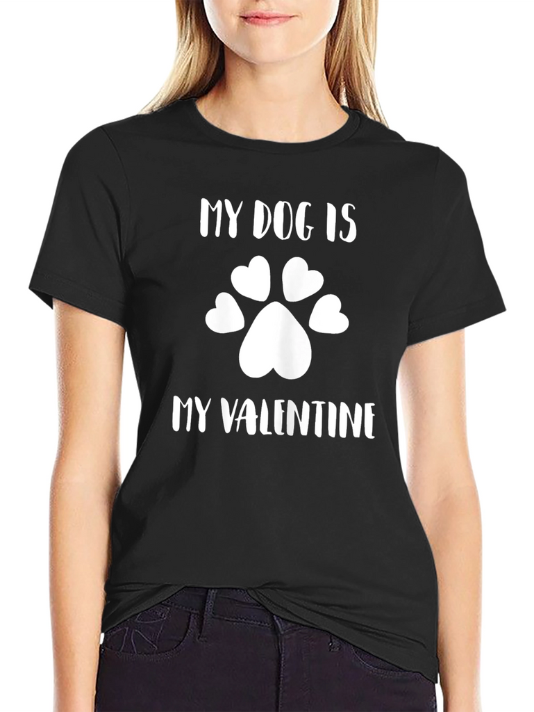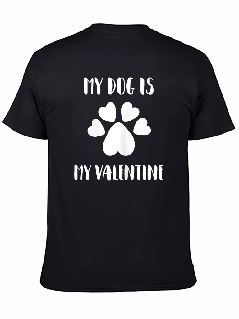 Declare your love for your furry friend this Valentine's Day with this adorable black t-shirt. Featuring a playful paw print design made of hearts and bold white lettering, this shirt is perfect for dog lovers. Made from a comfortable, breathable fabric, it's ideal for casual wear, dog walks, or lounging at home. Show off your love for your canine companion and make a statement this Valentine's season with this unique and stylish tee. A must-have for any proud dog parent!