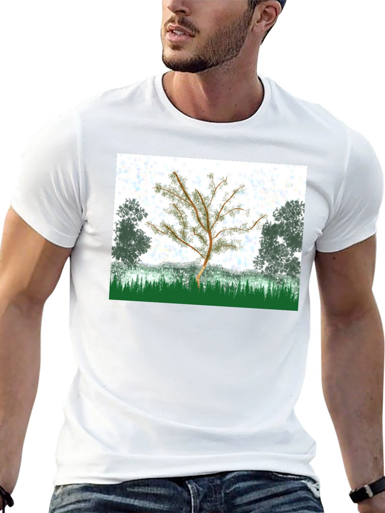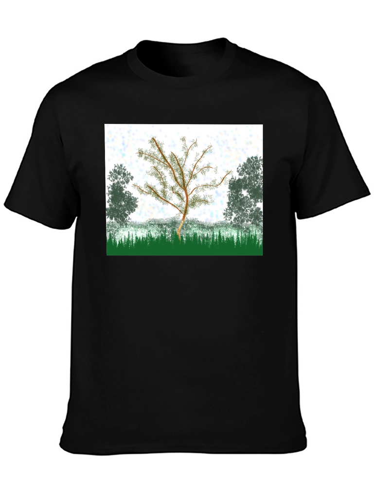 Embrace the beauty of nature with this eye-catching graphic t-shirt. Featuring a unique tree design set against a serene forest backdrop, this tee is perfect for nature lovers and those who appreciate artistic style. The detailed illustration adds a touch of artistry to your casual wardrobe. Made from soft, breathable fabric, it ensures all-day comfort. Ideal for everyday wear, outdoor adventures, or as a thoughtful gift, this t-shirt is a must-have addition to any collection. Show off your love for the outdoors in style!