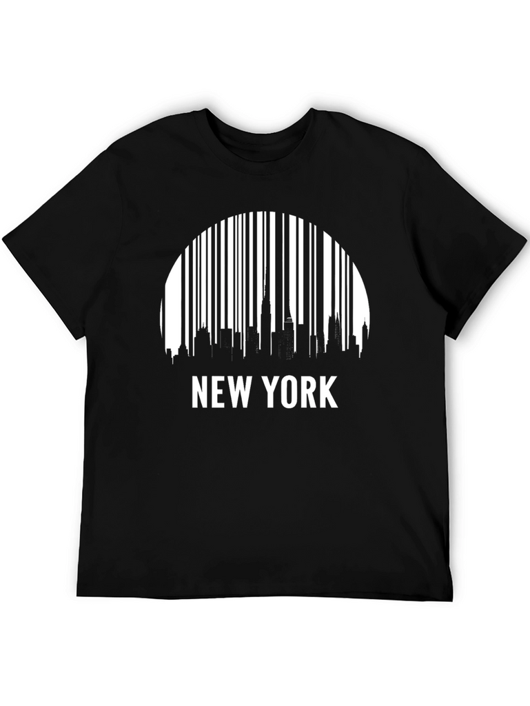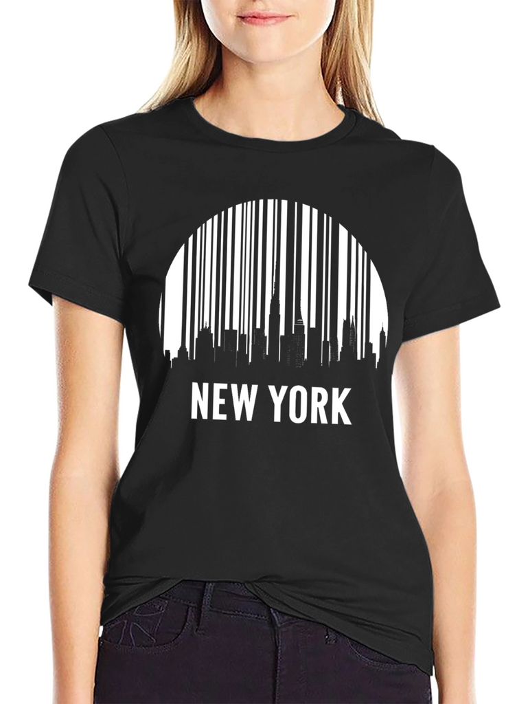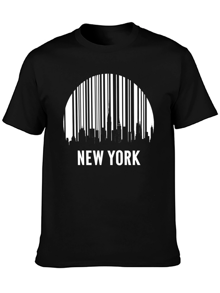 Show off your love for the Big Apple with this stylish black T-shirt. This unique design features a white barcode-style rendering of the New York City skyline, complete with recognizable skyscrapers. The words "NEW YORK" are printed in bold white letters below the skyline for added emphasis. Made from a comfortable, breathable fabric, this tee is perfect for everyday wear, casual outings, or as a souvenir for NYC lovers. Whether you're a New Yorker or simply an admirer, this T-shirt is a great way to display your affinity for one of the world's most iconic cities. Get yours today!
