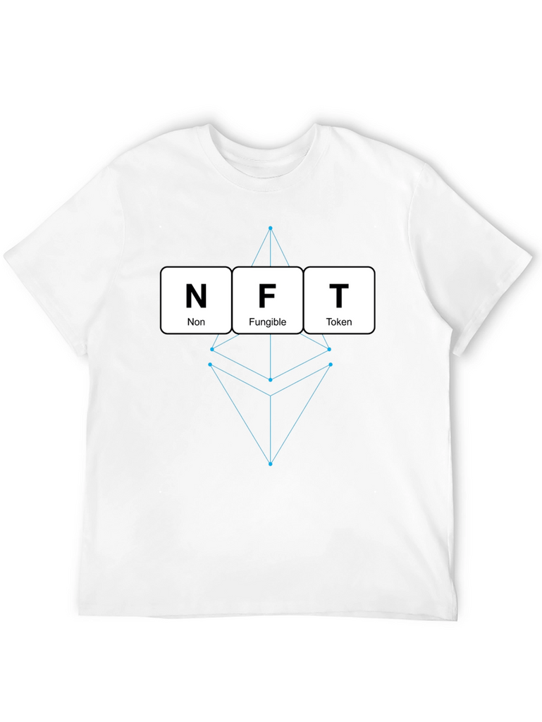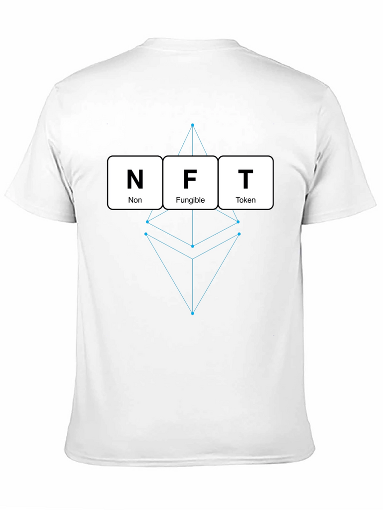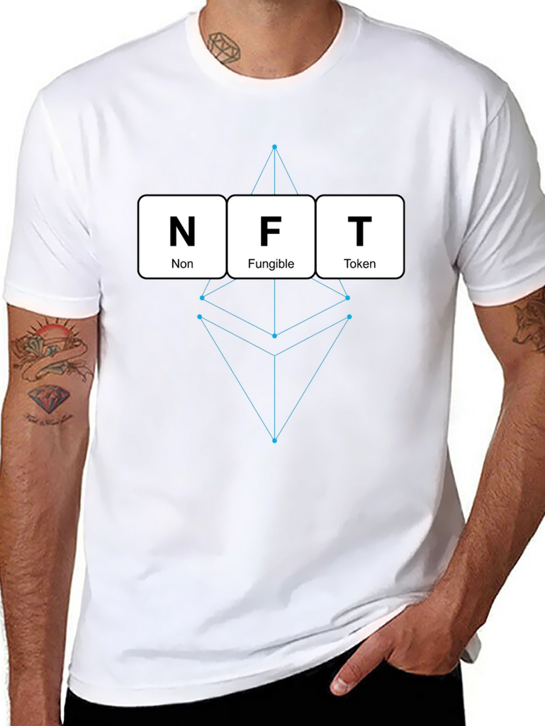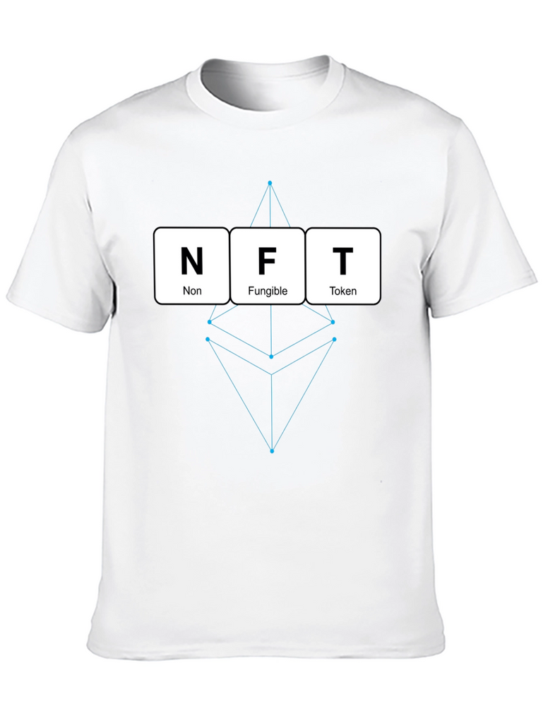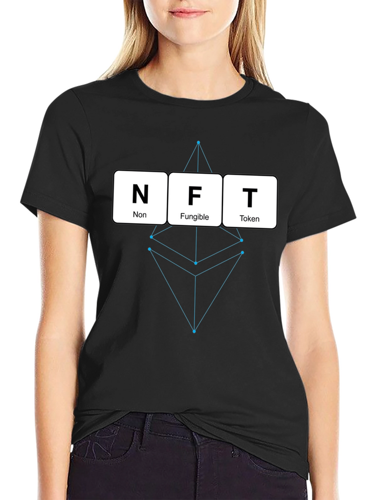 Show your love for the crypto world with this stylish black t-shirt. This shirt features a bold "NFT" design with "Non", "Fungible", and "Token" displayed on white squares, connected to a crypto logo. The comfortable fit makes it perfect for casual wear, tech meetups, or showcasing your enthusiasm for blockchain technology. Grab yours and show off your passion for NFTs!