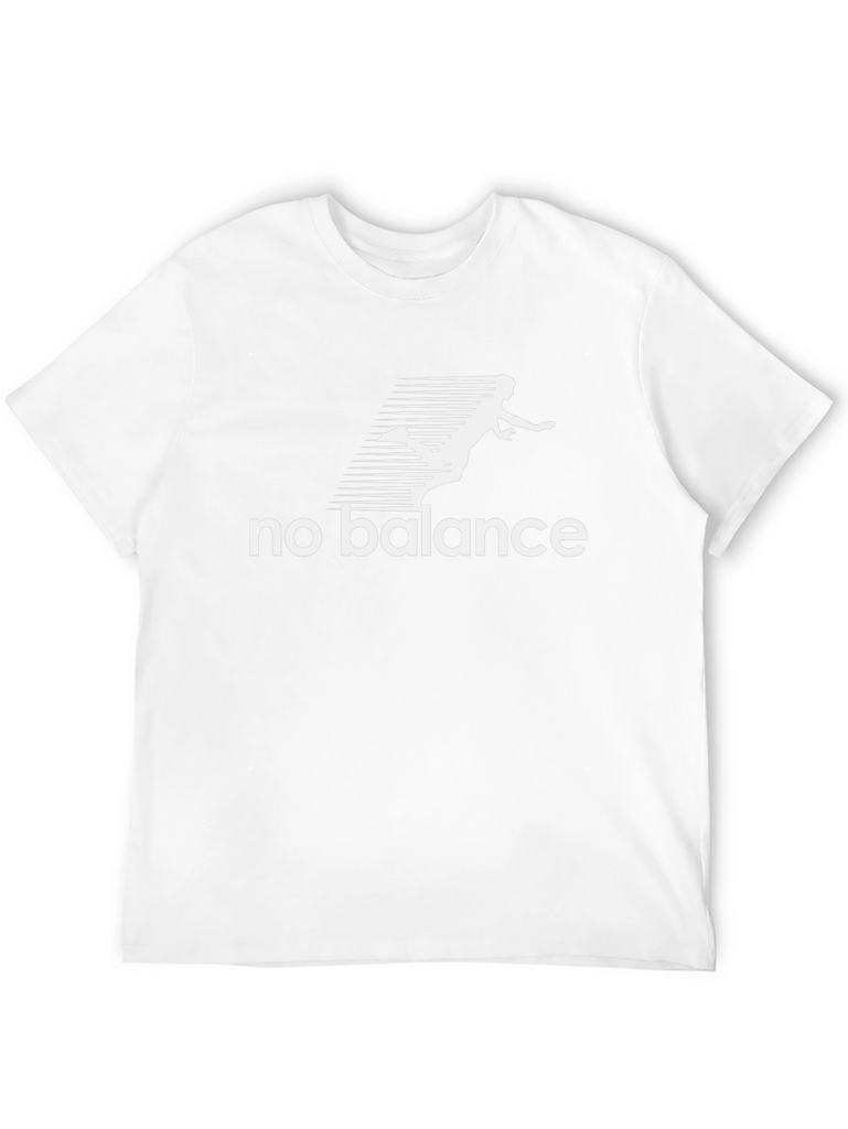 Show off your fun sense of humor with this black t-shirt. This tee features a humorous graphic with a stylized figure in motion above the phrase "no balance" in bold, white font. The minimalist design and contrasting colors create a modern, eye-catching look. Made from a soft, breathable fabric, this shirt offers all-day comfort and durability. Perfect for casual wear, workouts, or expressing your unique personality. Pair it with jeans, shorts, or leggings for a relaxed and stylish outfit. A great conversation starter!
