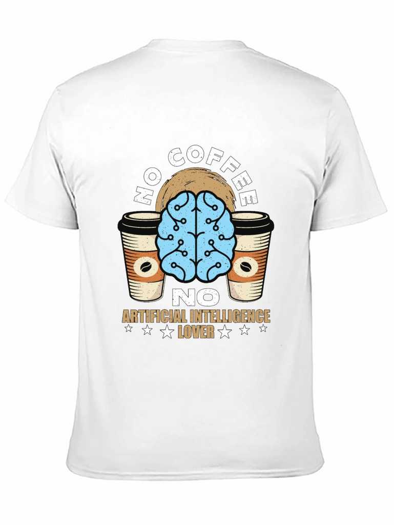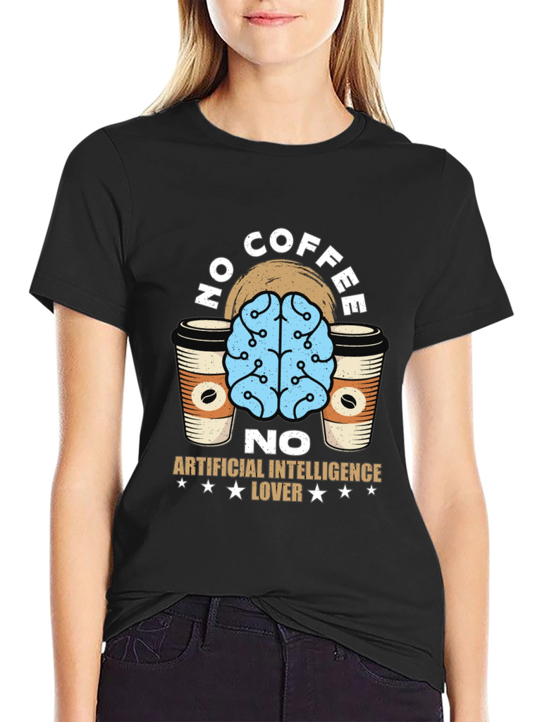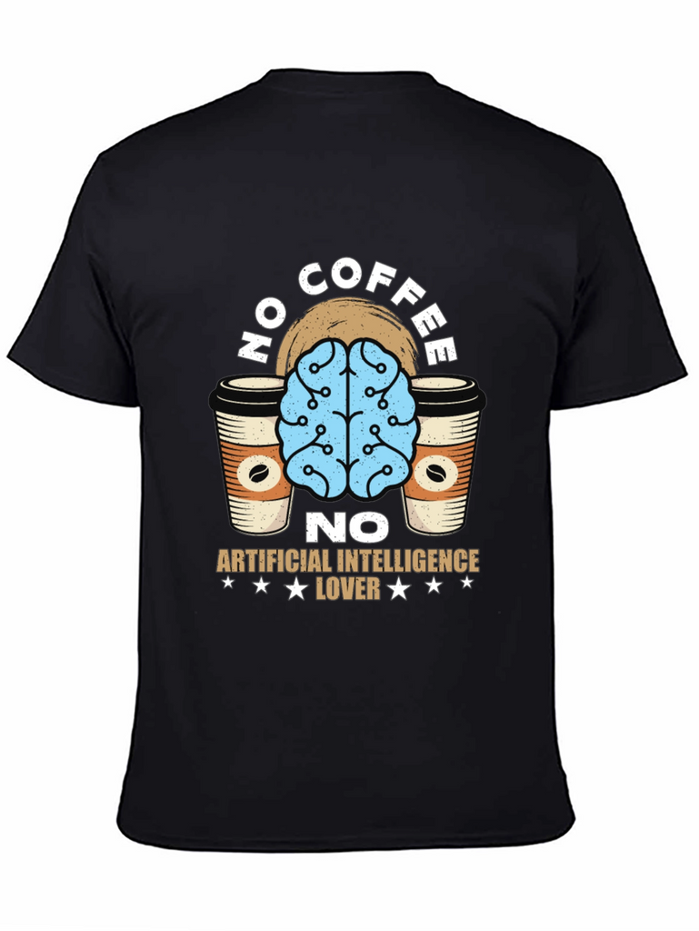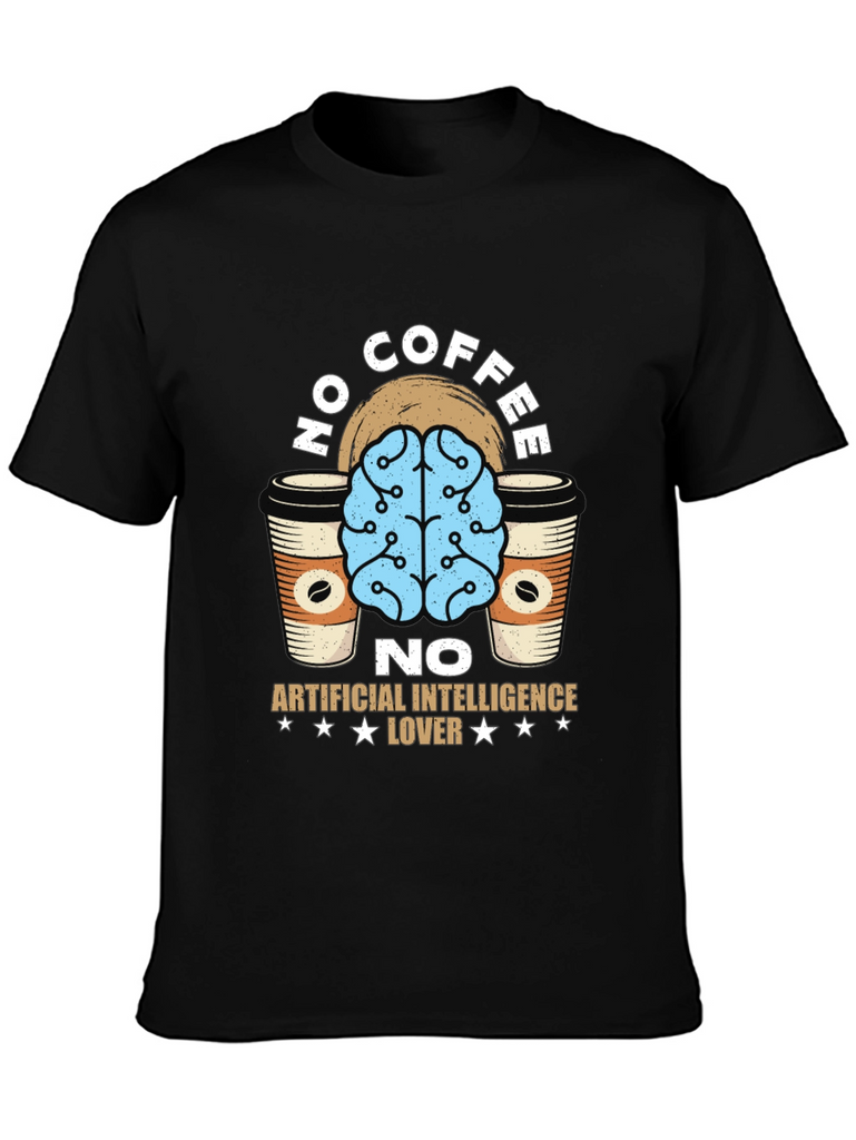 Express your unique personality with this eye-catching graphic t-shirt. This black tee features a bold design with the text "NO COFFEE NO ARTIFICIAL INTELLIGENCE LOVER", perfect for anyone passionate about technology and coffee. The design incorporates a stylized brain and coffee cups. Made from a comfortable, breathable fabric, this t-shirt is ideal for casual wear. Whether you're heading to a tech conference, a coffee shop, or simply hanging out with friends, this t-shirt is sure to spark conversations and showcase your interests. It's a great addition to any wardrobe and makes a thoughtful gift for the tech-savvy coffee enthusiast in your life.
