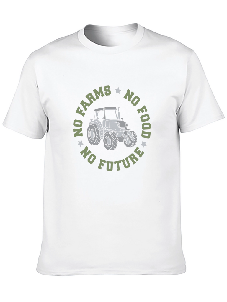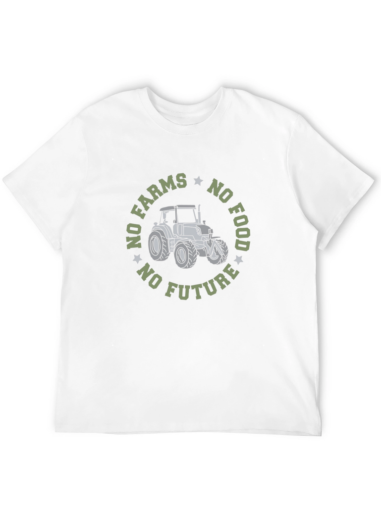 Show your support for farmers with this eye-catching black t-shirt. Featuring a bold graphic of a tractor surrounded by the statement "No Farms No Food No Future," this shirt is perfect for anyone who values sustainable agriculture and locally sourced food. Made from comfortable materials, this t-shirt is great for everyday wear, whether you're working on the farm or running errands in town. Make a statement and stand up for the importance of farming with this unique design.