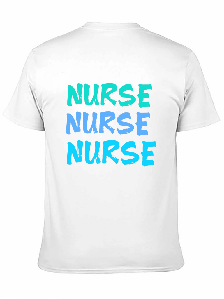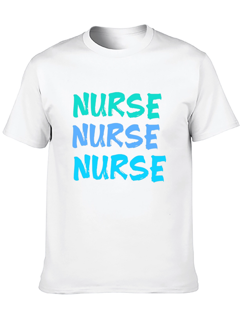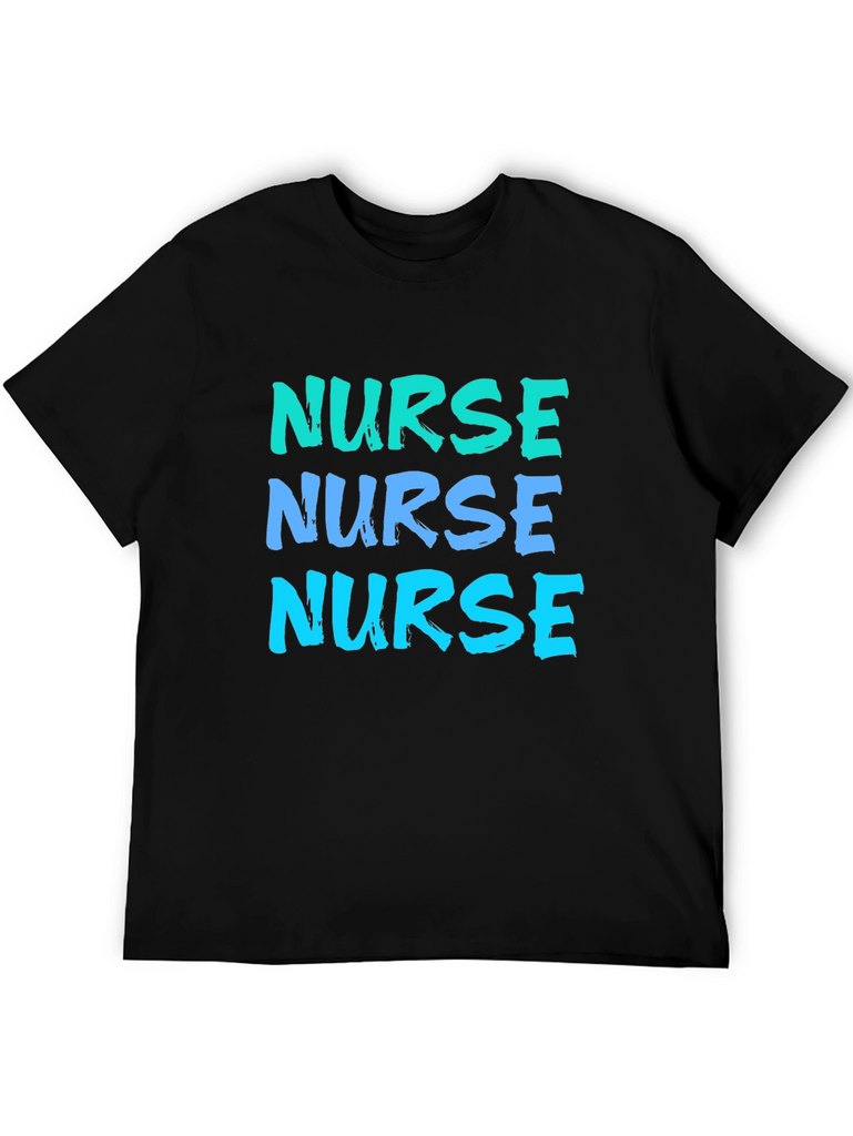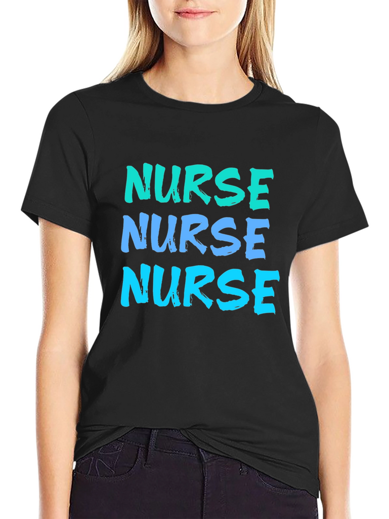 Show off your dedication with this eye-catching "Nurse" t-shirt. Featuring a bold, repeated text design in gradient blue hues, this shirt makes a statement. The classic black background ensures the vibrant text pops, making it easily readable. Made from what appears to be comfortable, breathable fabric, this tee is perfect for casual wear, work, or nursing school events. It's an excellent gift for the hardworking nurse in your life, or a treat for yourself to show your profession with pride.