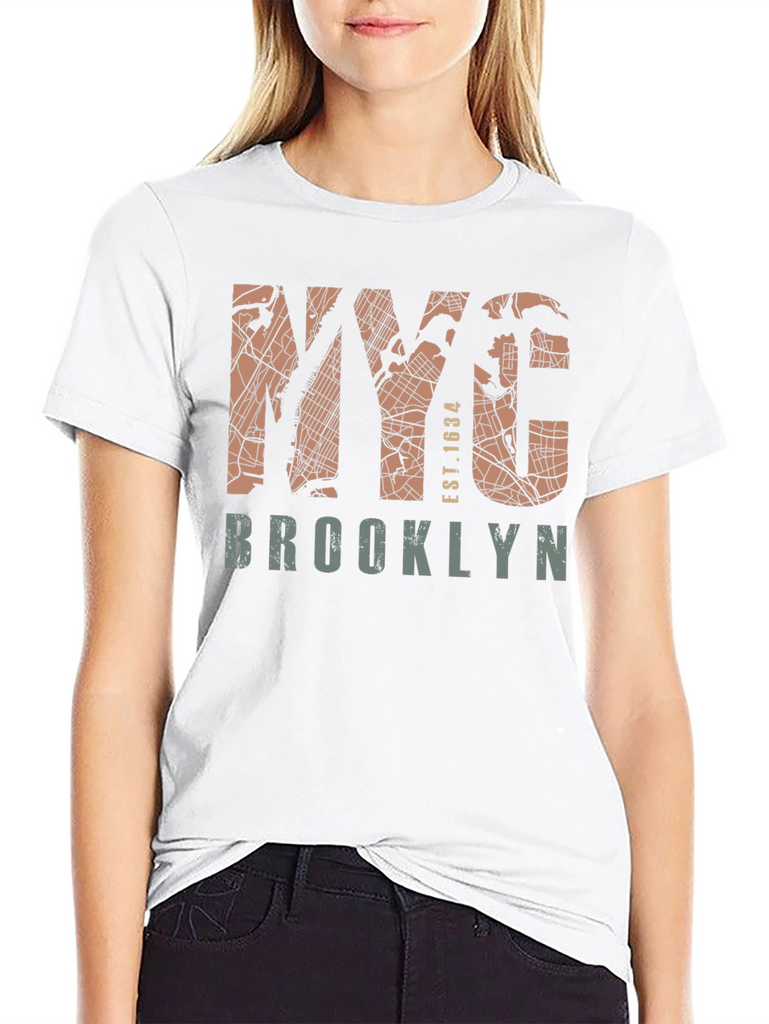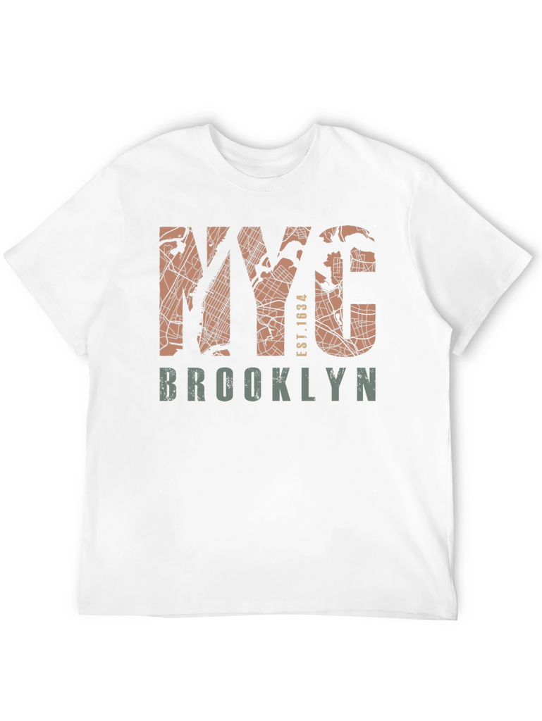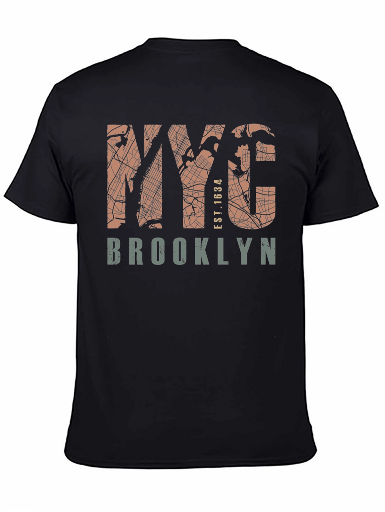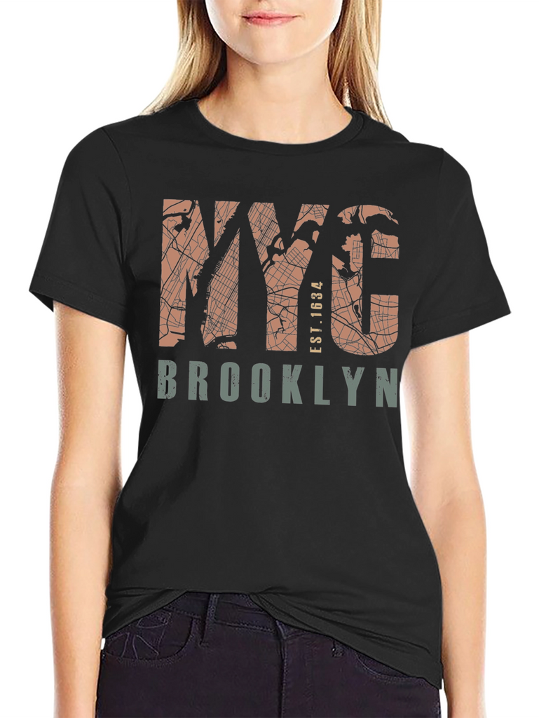 Showcase your love for New York with this stylish black graphic t-shirt. Featuring a map-filled "NYC" design and "BROOKLYN" text. The vintage-inspired look makes it a standout piece. Perfect for casual wear or as a gift for New York enthusiasts. The comfortable fit and eye-catching print ensures you'll turn heads wherever you go. The shirt has a unique design that includes "EST. 1634", adding a touch of history. Embrace urban style with this must-have addition to your wardrobe.
