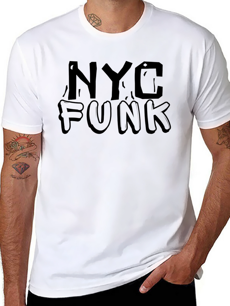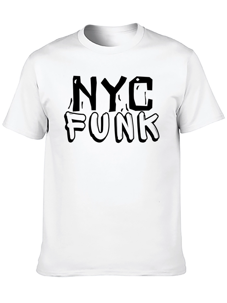Rock a cool, urban vibe with this black t-shirt featuring a bold "NYC Funk" graphic print. The design exudes a street-style edge, making it a statement piece for casual outings or music events. Made from comfortable, breathable fabric, this shirt is perfect for everyday wear. Pair it with jeans and sneakers for a relaxed look, or dress it up with a jacket for an edgier ensemble. Express your individuality and love for the city with this standout tee. Add this unique graphic tee to your wardrobe for a touch of urban flair!