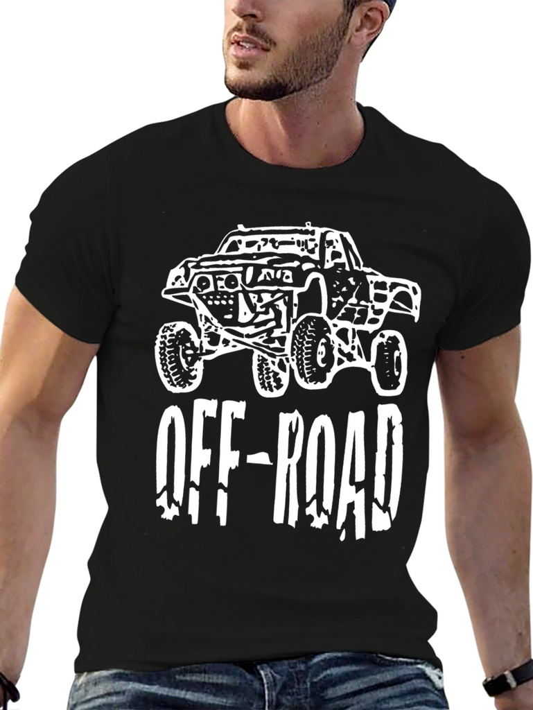 Showcase your love for off-roading with this eye-catching graphic tee. Featuring a bold, white illustration of an off-road truck above the text 'OFF-ROAD', this black t-shirt is perfect for casual wear and outdoor adventures. The detailed design captures the rugged spirit of off-road vehicles, making it a standout piece in any wardrobe. Made from comfortable, breathable fabric, it's ideal for everyday wear or as a gift for the off-road enthusiast in your life. Get ready to hit the trails in style!