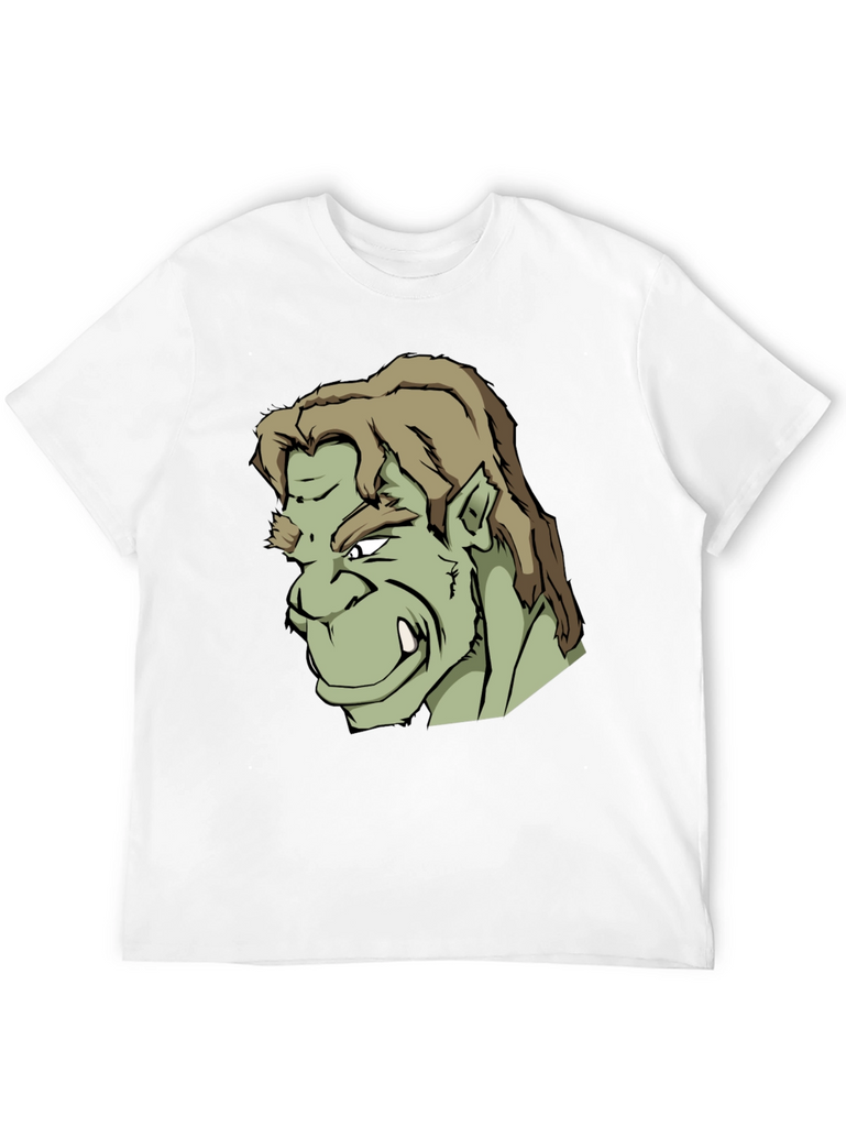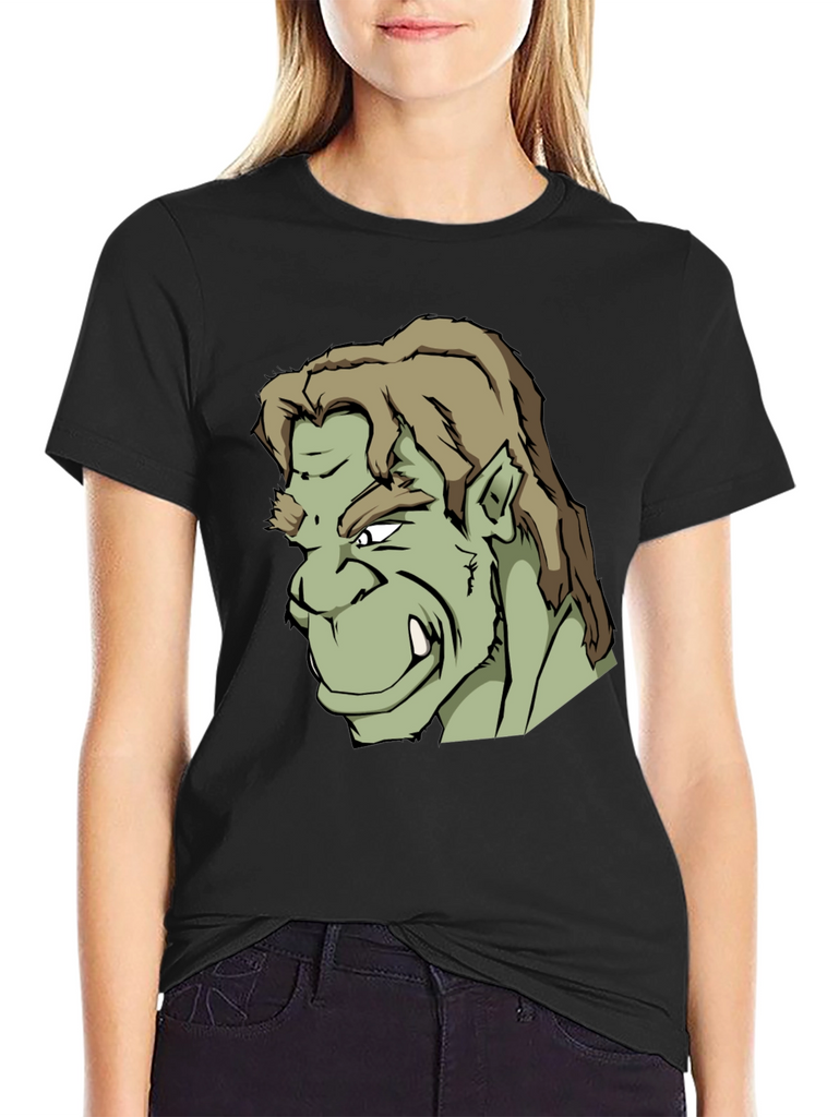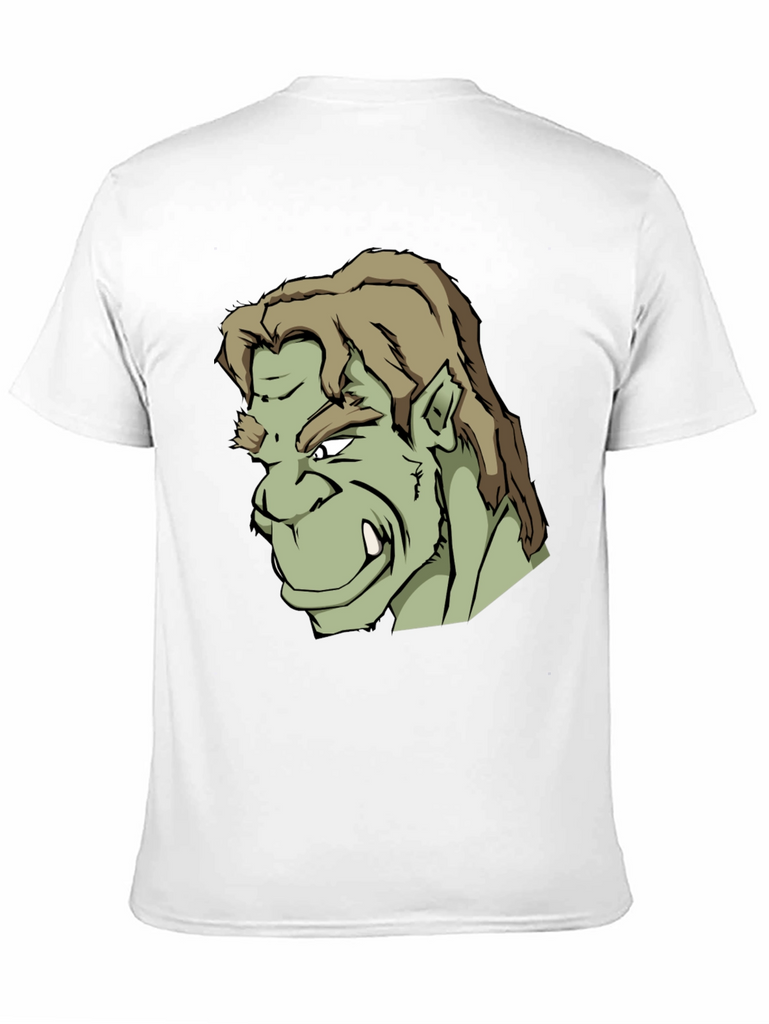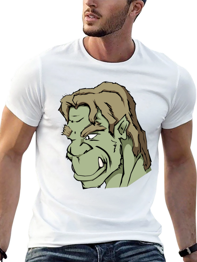 Showcase your unique style with this bold black t-shirt featuring a striking graphic print of an orc-like character. The design is detailed with sharp lines, contrasting shades of green, and a fierce expression. Made from what appears to be a soft, comfortable cotton blend, this tee offers both style and all-day wearability. Perfect for casual outings, gaming sessions, or expressing your love for fantasy characters. Stand out from the crowd and make a statement with this standout graphic tee.