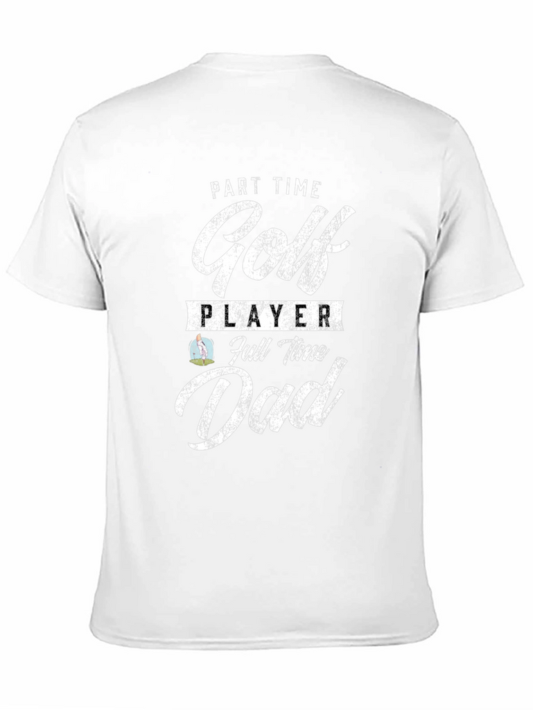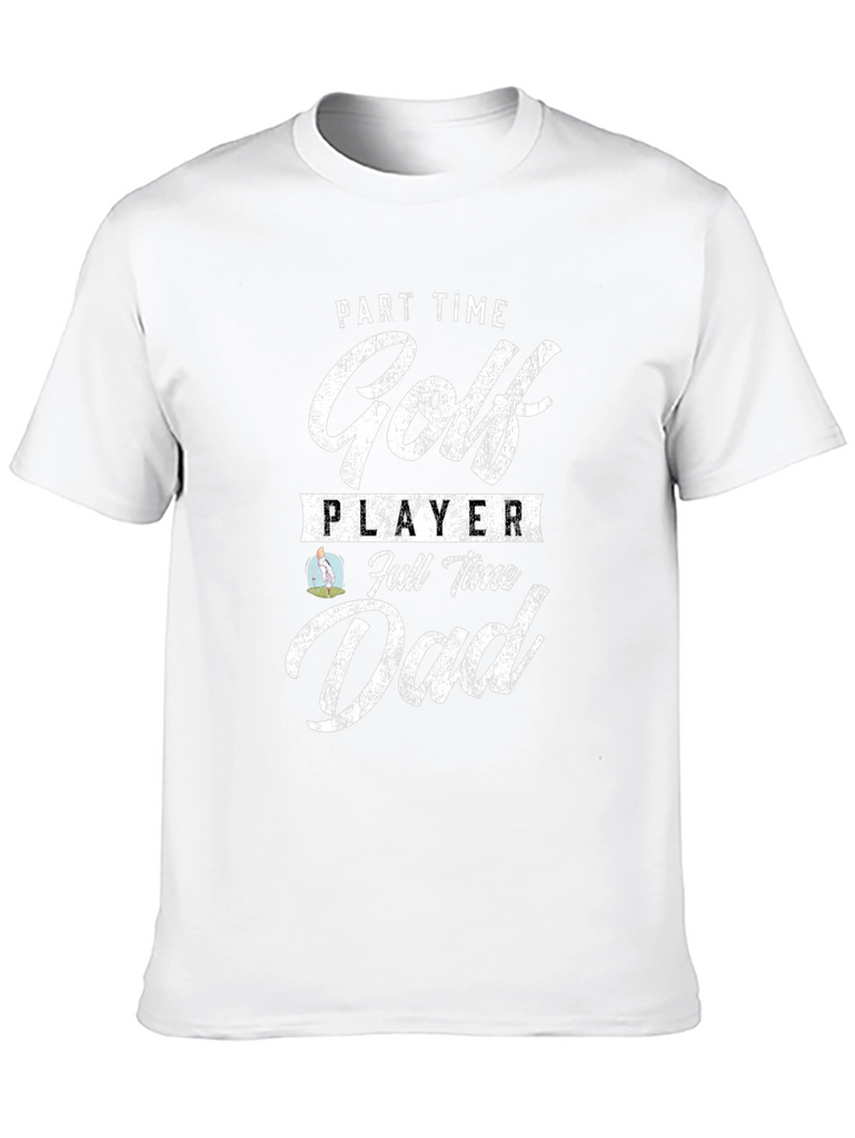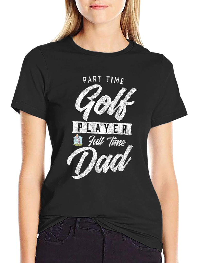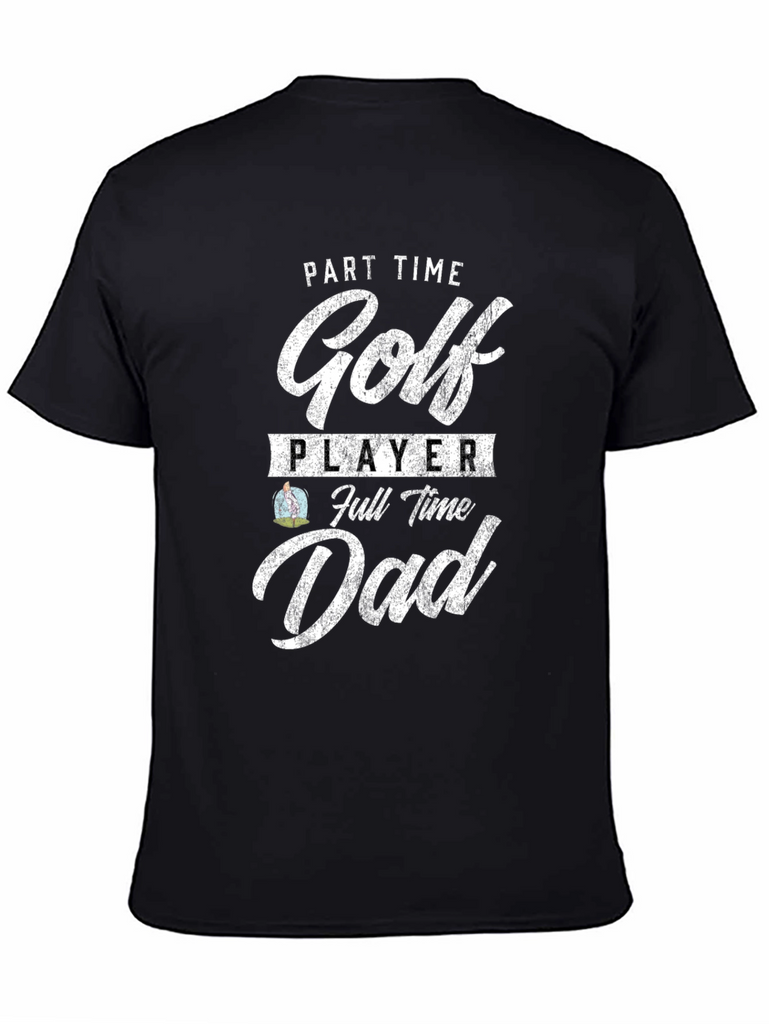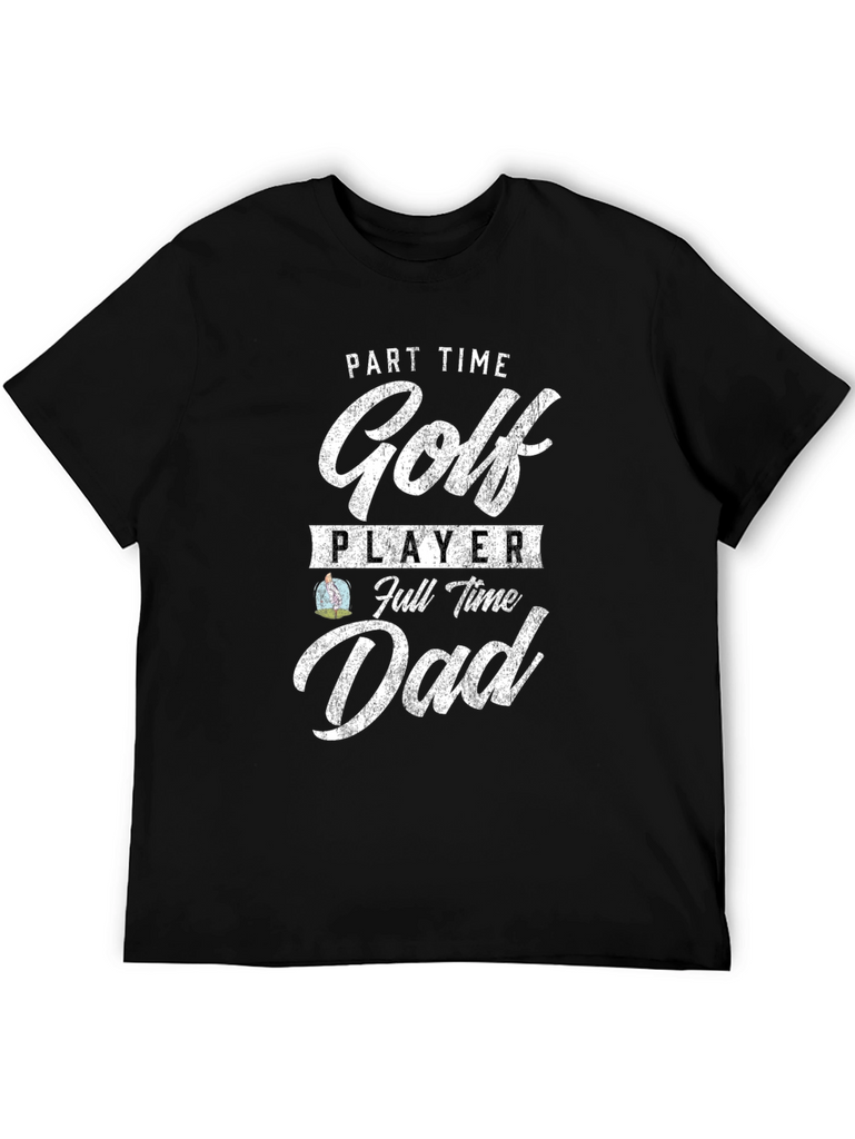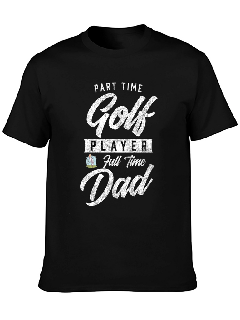 Showcase your passions with this stylish black graphic tee. Featuring the playful declaration "Part Time Golf Player Full Time Dad" in a distressed white font, this shirt is ideal for golf-loving dads. A golf cart graphic adds a touch of fun. This comfortable shirt is perfect for casual outings, golf course adventures, or relaxed weekends. The simple design pairs easily with jeans, shorts, or khakis. It’s a great gift for fathers who love golf and family time. This tee is sure to become a favorite in any dad's wardrobe, blending humor and style.