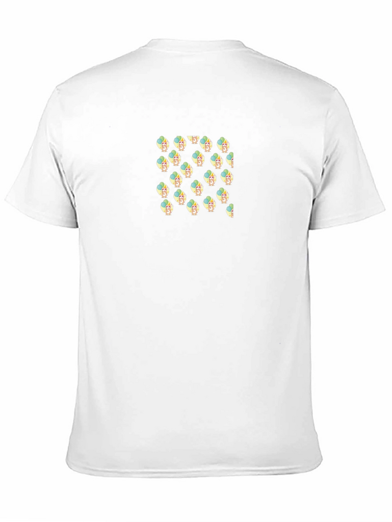 Show off your playful side with this unique graphic tee! Made from a comfortable, soft-feel fabric, this black t-shirt features a fun and quirky repeating pattern across the chest. The design adds a pop of personality to your everyday wear. This short-sleeved shirt is perfect for casual outings, weekend adventures, or simply lounging in style. Pair it with jeans, shorts, or joggers for a relaxed yet fashionable look. Stand out from the crowd with this eye-catching and comfortable tee that is sure to spark conversations and bring smiles wherever you go.