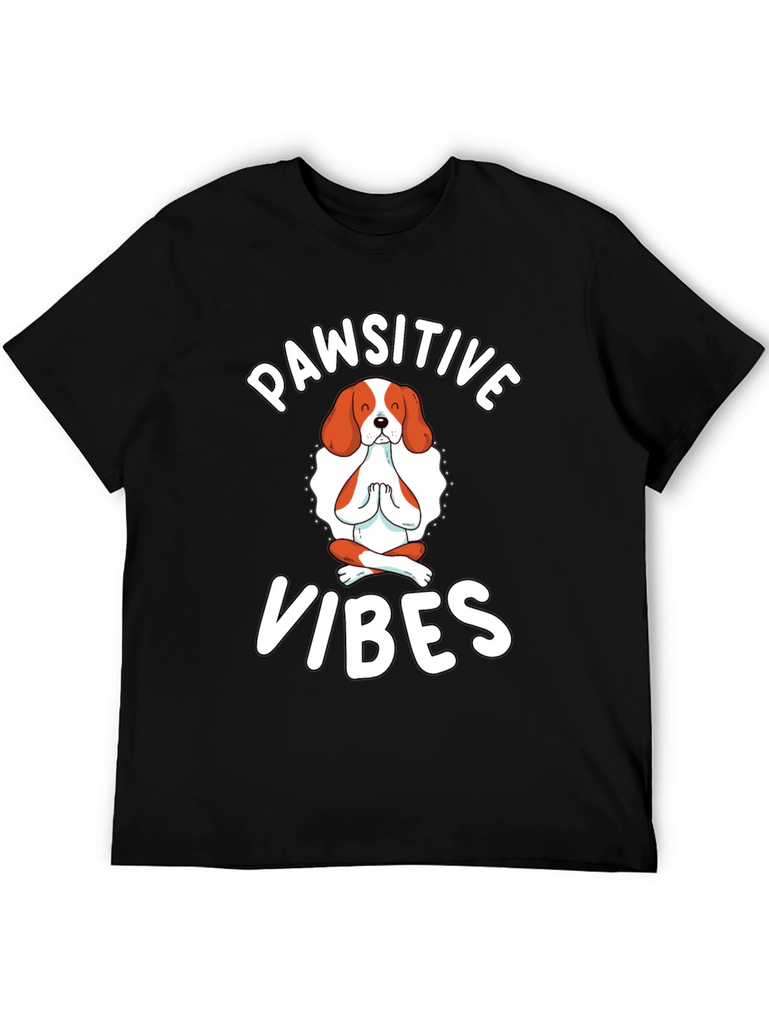 Spread good vibes with this fun "Pawsitive Vibes" t-shirt! This black tee features a cute cartoon dog in a meditative yoga pose, set within a decorative white bubble design. The playful, eye-catching design is printed in crisp white lettering, making it a great conversation starter and a must-have for dog lovers. Made from comfortable, breathable fabric, this t-shirt is perfect for casual wear, yoga sessions, or simply showing off your positive attitude. Get yours today and share the "Pawsitive Vibes"!