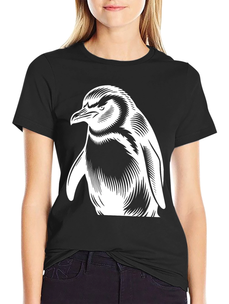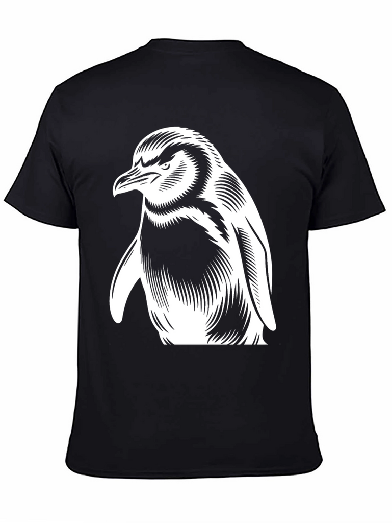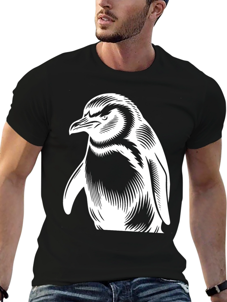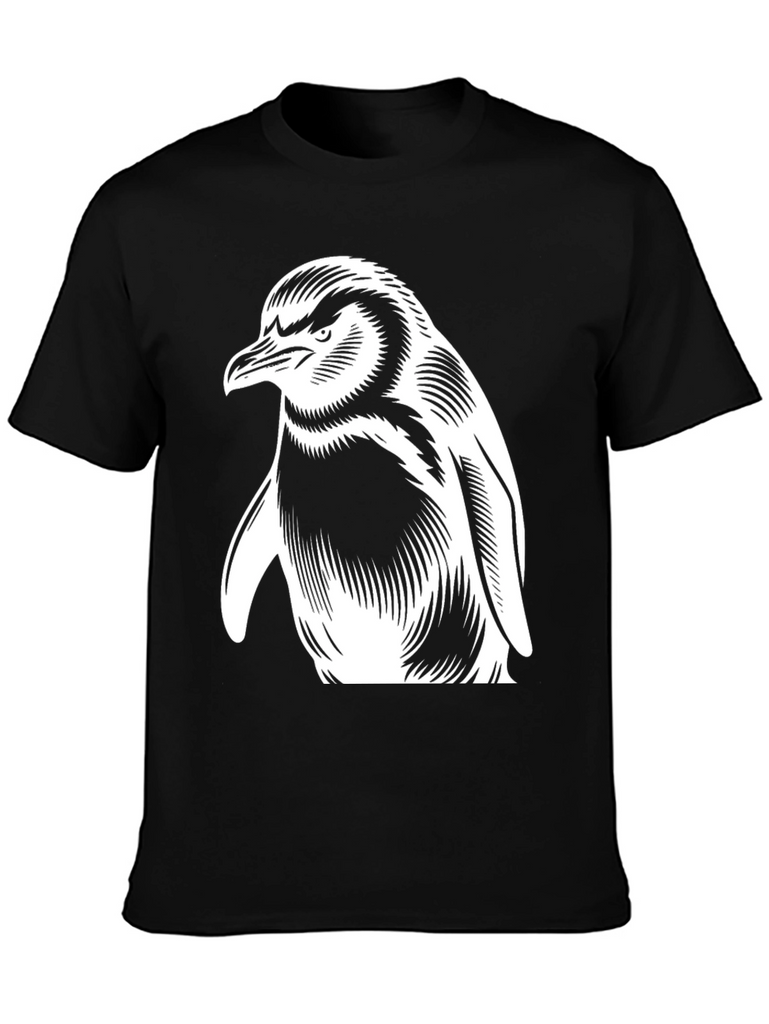 Show off your love for wildlife with this stylish black t-shirt. This casual tee features a bold, artistic rendition of a penguin on the front, rendered in crisp white against the dark background. Made from comfortable cotton, this shirt offers a relaxed fit suitable for everyday wear. The graphic design is eye-catching and unique, perfect for casual outings, lounging at home, or as a statement piece. Easy to pair with jeans, shorts, or chinos, this penguin tee is a versatile addition to any wardrobe. Get yours today and add some cool to your wardrobe!