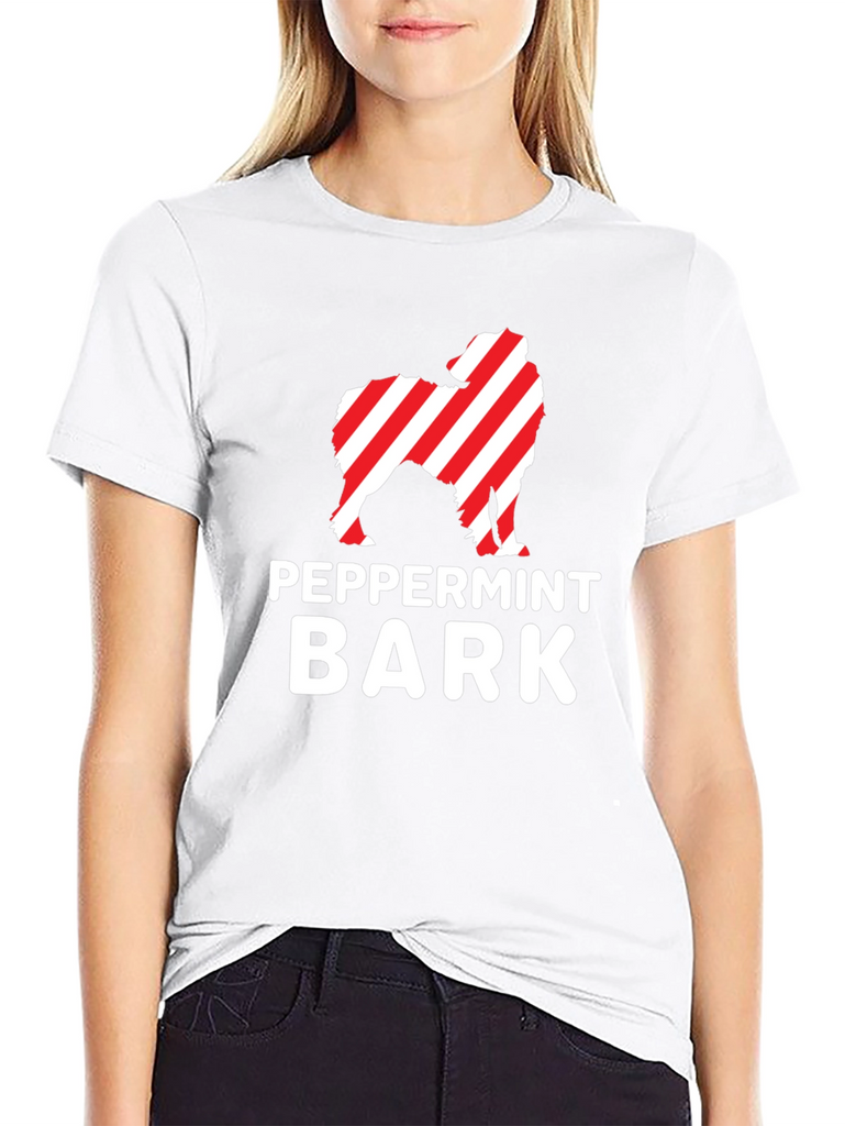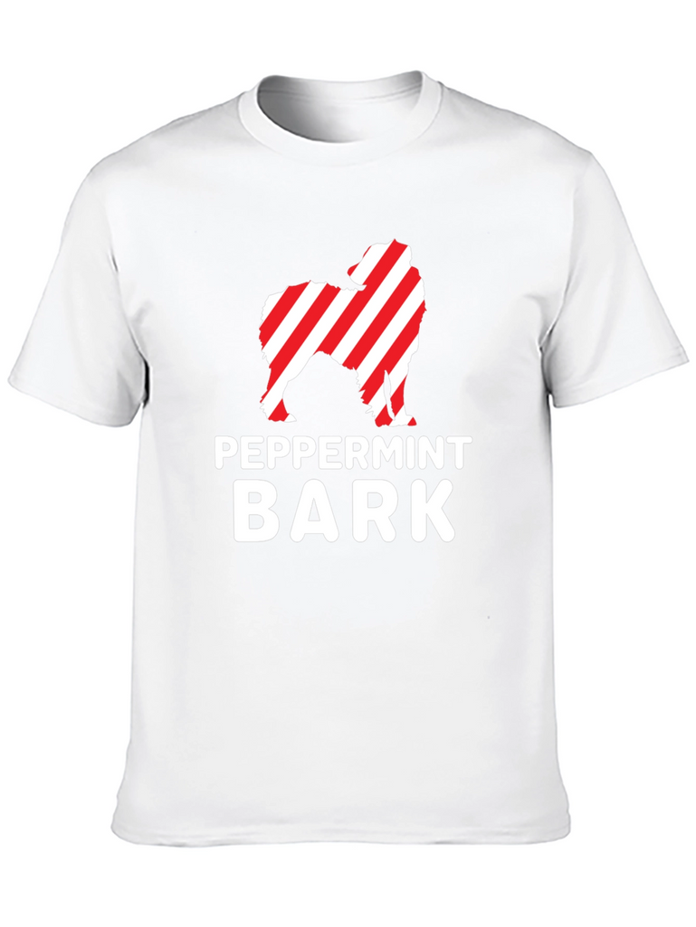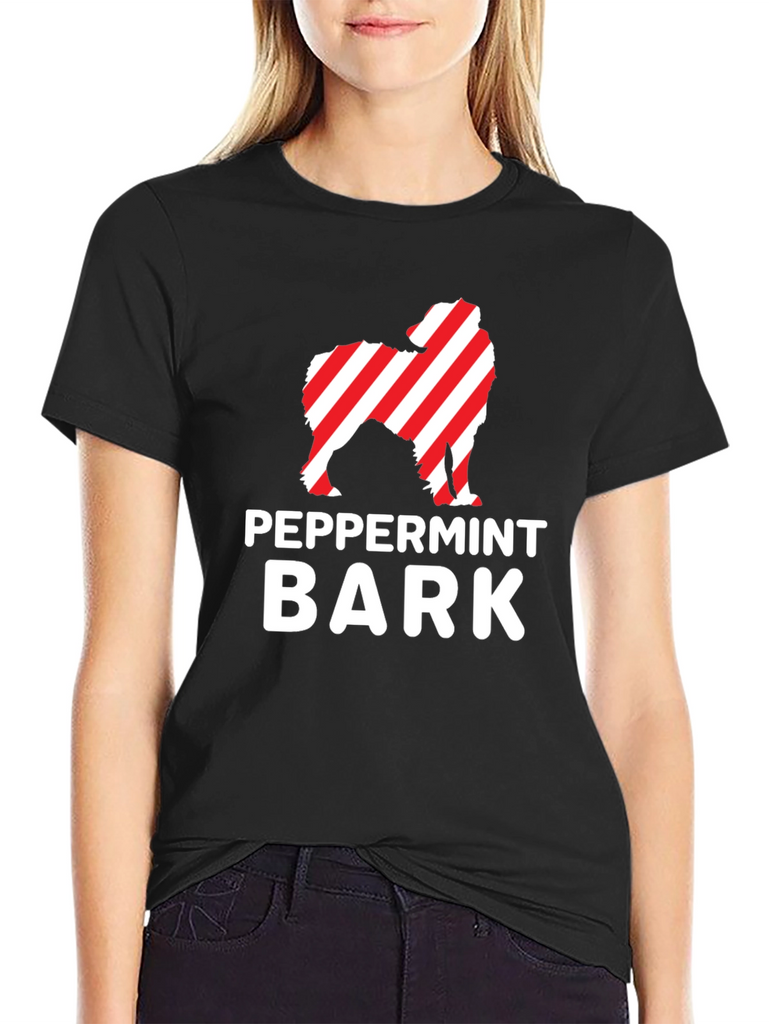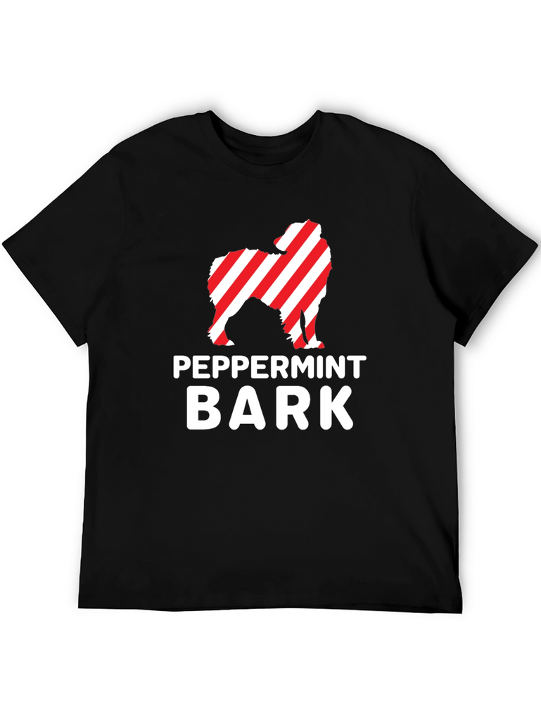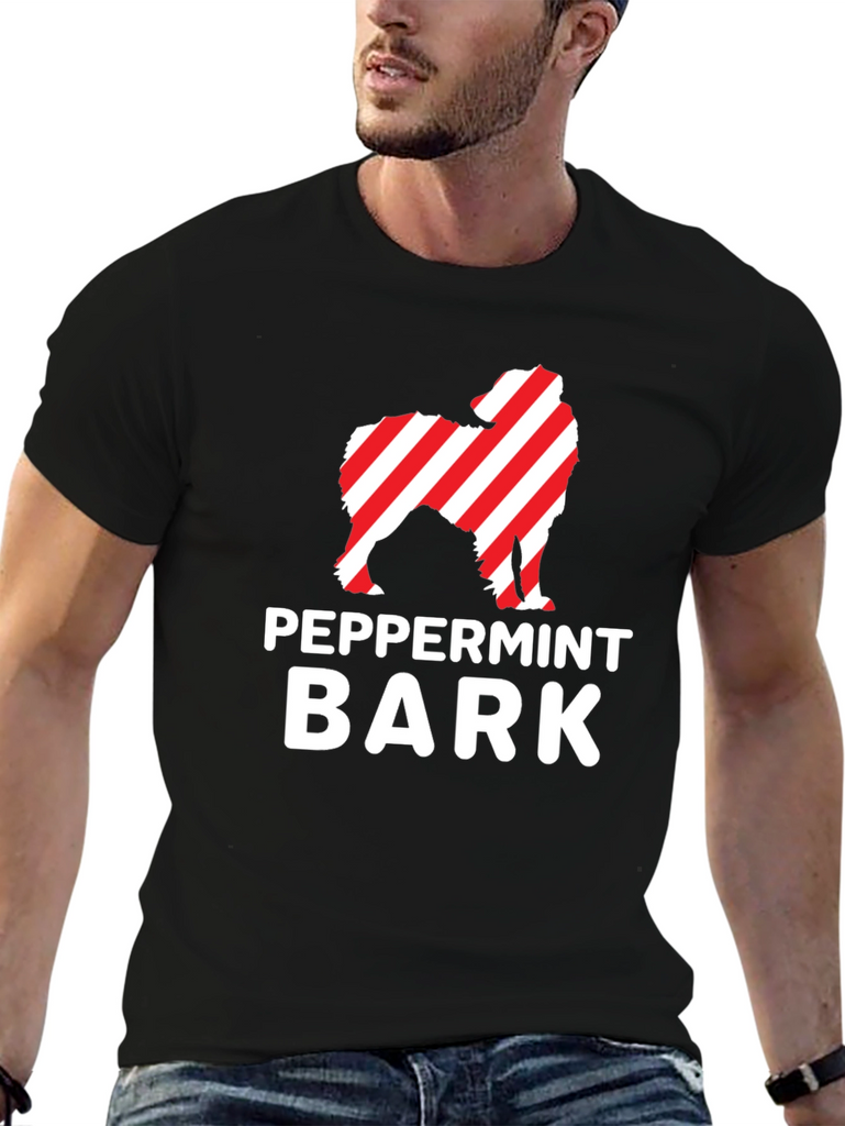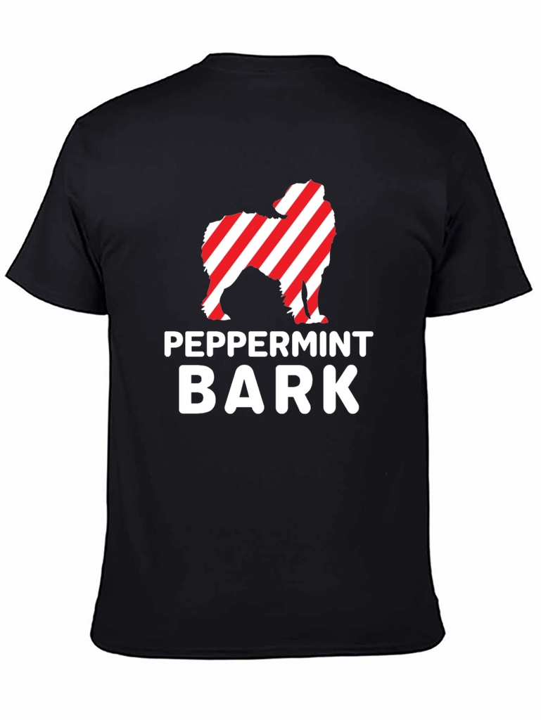 Spread holiday cheer with this Peppermint Bark Dog T-Shirt. This stylish black tee features a unique design: a red and white striped dog silhouette above the festive words "PEPPERMINT BARK" in bold white letters. Made from comfortable materials, this shirt is perfect for casual wear during the Christmas season or any time you want to show your love for dogs and the holidays. It's an eye-catching conversation starter and a fun way to express your personality. Great for dog lovers, holiday enthusiasts, or anyone who enjoys unique apparel. Show off your festive side with this memorable and charming t-shirt.