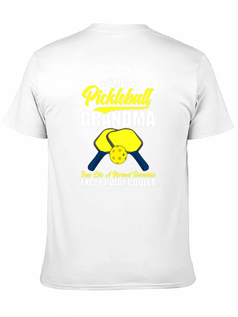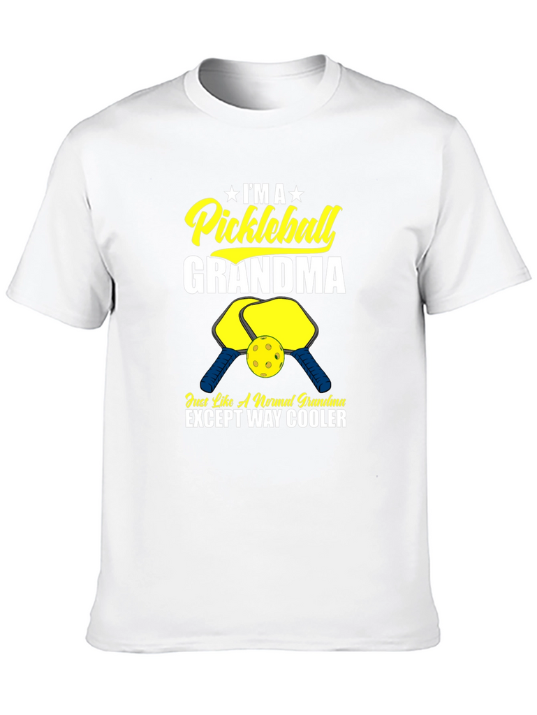 Show off your pickleball pride with this fun and stylish black t-shirt. Featuring a playful "I'm a Pickleball GRANDMA" graphic with crossed paddles and a ball, this tee is perfect for the sporty grandma. The design also includes the phrase "Just Like A Normal Grandma EXCEPT WAY COOLER", adding a touch of humor. Made from a comfortable-looking fabric, this shirt is ideal for casual wear, pickleball games, or as a thoughtful gift for the pickleball-loving grandma in your life. Let everyone know you're not just a grandma, you're a cool pickleball grandma!