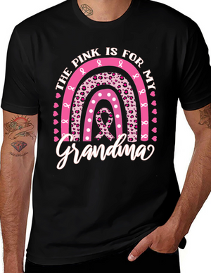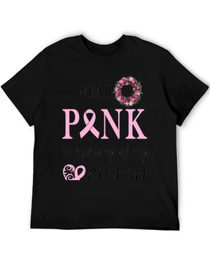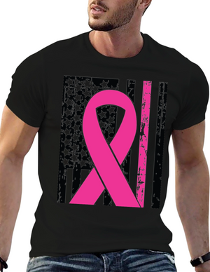 Show your support with this classic black t-shirt featuring a prominent pink ribbon, symbolizing breast cancer awareness. Made from what appears to be a soft, comfortable cotton blend, this tee is perfect for everyday wear and spreading a meaningful message. The bold pink ribbon design makes a statement, while the casual fit ensures all-day comfort. Ideal for charity walks, awareness events, or simply showing solidarity with those affected by breast cancer. Wear it proudly and contribute to the cause with style.