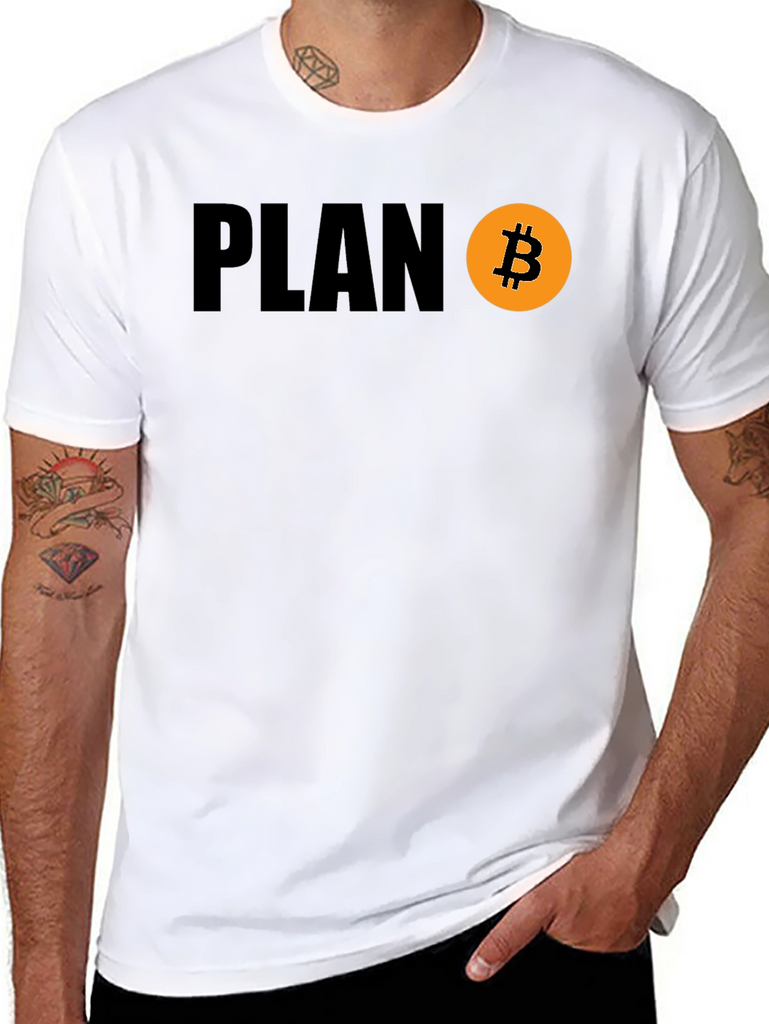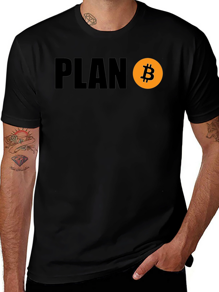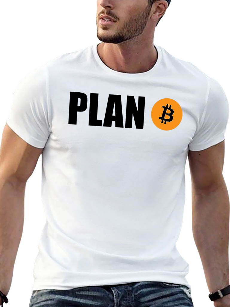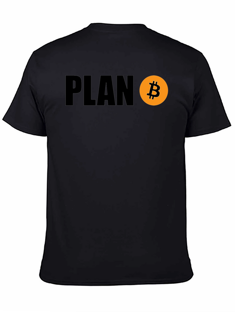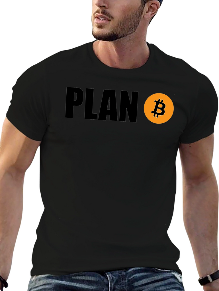 Show off your crypto enthusiasm with this stylish black t-shirt. The design features the word "PLAN" followed by the Bitcoin logo, indicating a solid investment strategy. Made from comfortable, breathable fabric, this tee is perfect for casual wear, crypto meetups, or just expressing your belief in the future of digital currency. The bold design is sure to catch the eye and spark conversations. Whether you're a seasoned crypto investor or just getting started, this Plan B Bitcoin t-shirt is a great way to show your support for the decentralized revolution. Get yours today and let everyone know you're in it for the long haul!