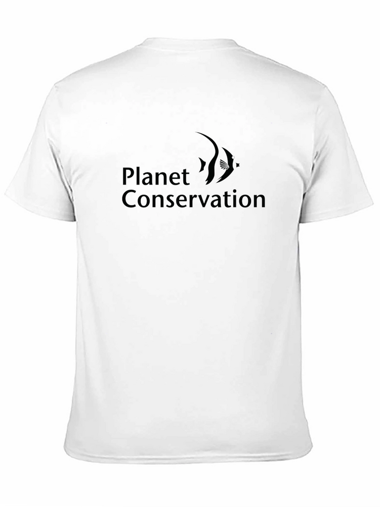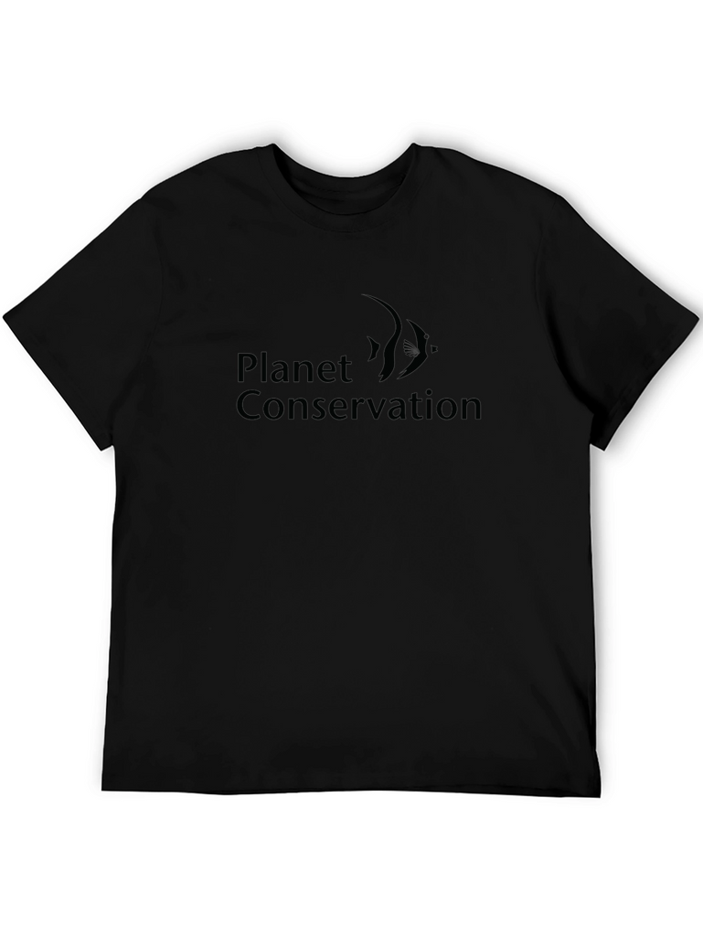 Show your love for the planet with this stylish black t-shirt. Featuring the 'Planet Conservation' graphic with two subtle fish, this tee is perfect for everyday wear and spreading an important message. Made from a soft, comfortable fabric, it offers a relaxed fit and is easy to care for. Whether you're running errands, hanging out with friends, or attending a conservation event, this t-shirt will keep you looking and feeling great. Its simple yet meaningful design makes it a versatile addition to any wardrobe. Support a cause you care about while looking good!