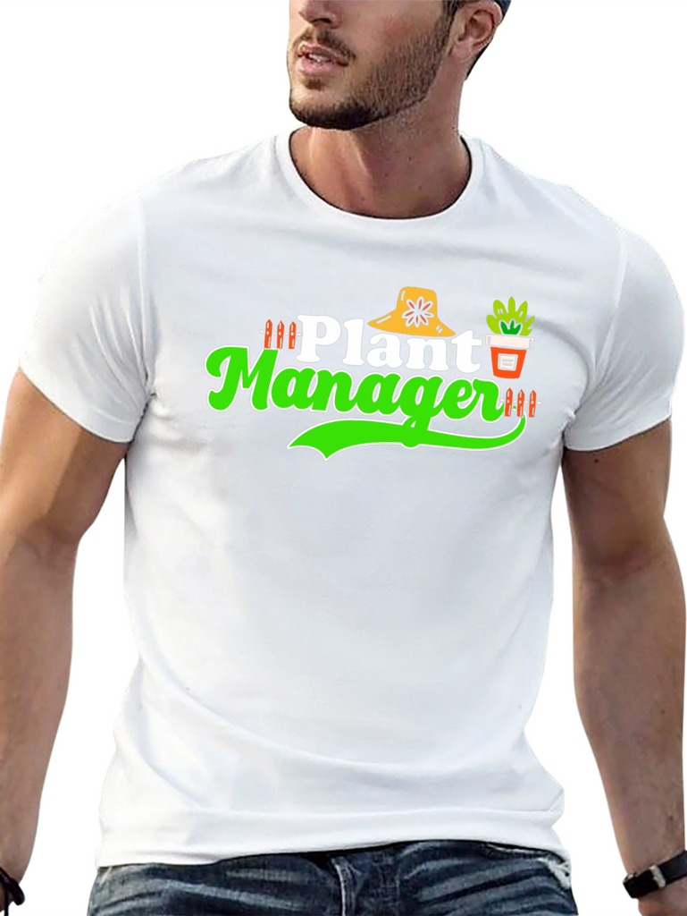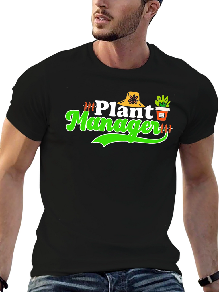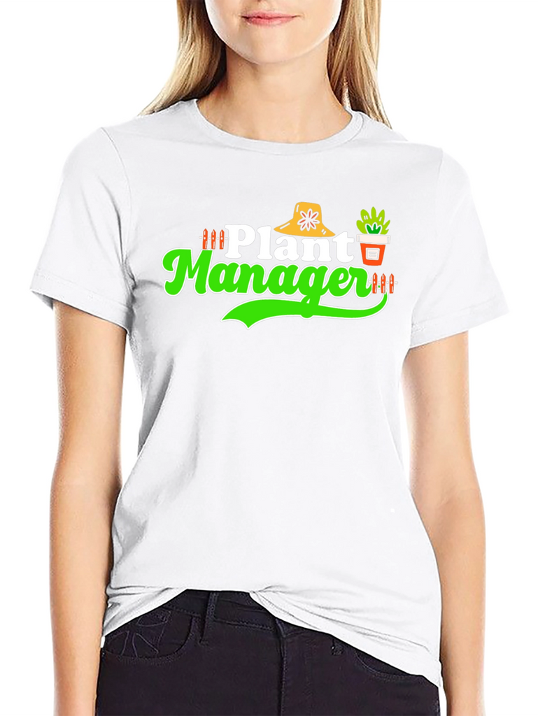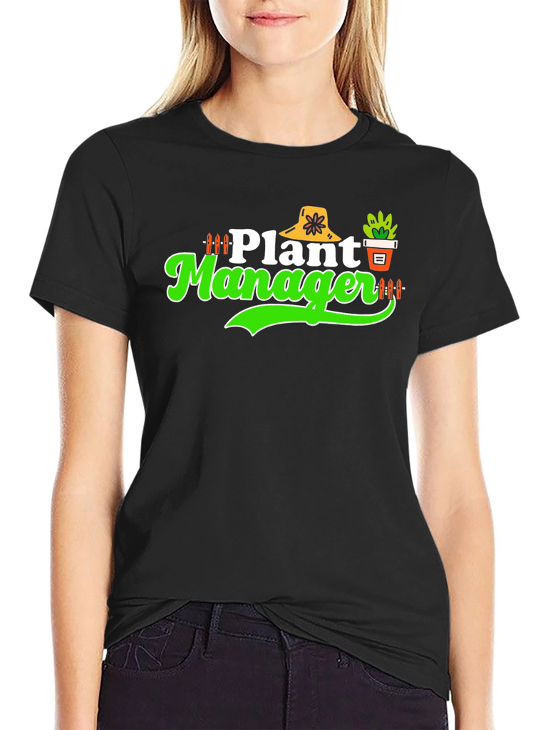 Show off your love for plants with this stylish black T-shirt! The tee features a fun "Plant Manager" design, complete with whimsical illustrations of a sunhat, a potted plant, and a charming little garden fence. The vibrant green lettering adds a pop of color against the sleek black background. Made from comfortable, breathable fabric, this T-shirt is perfect for casual wear. It's an excellent choice for gardening enthusiasts, plant lovers, or anyone who enjoys a touch of nature in their wardrobe. Whether you're tending to your indoor jungle or simply want to express your green thumb, this Plant Manager T-shirt is a must-have!