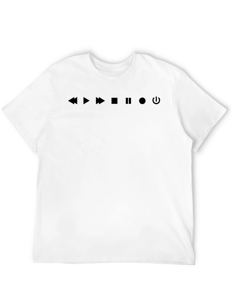 This sleek black t-shirt features a unique design with play, pause, stop, rewind, and power symbols. The shirt is made from a soft, comfortable fabric and has a classic crew neck cut. This t-shirt is perfect for anyone who loves music, technology, or just wants to make a statement. Wear it to your next concert, while coding, or just relaxing at home. Its unique design is sure to turn heads and start conversations, this cool shirt is a must-have for your wardrobe. It’s also a great gift for the tech-savvy friend or music lover in your life.