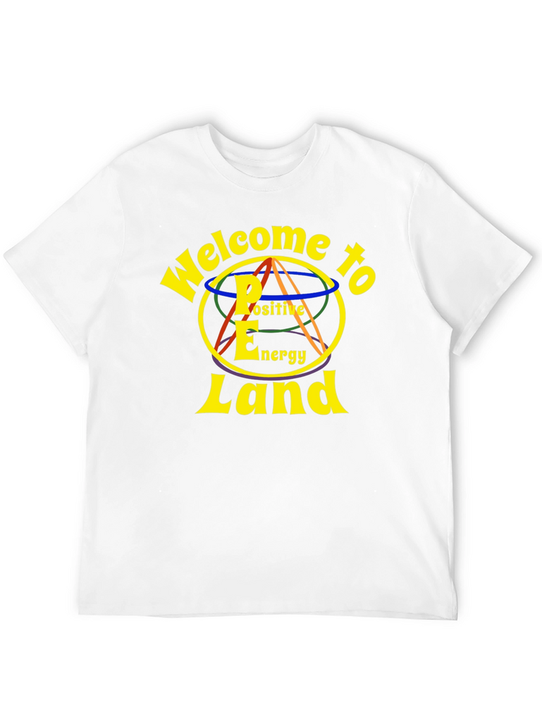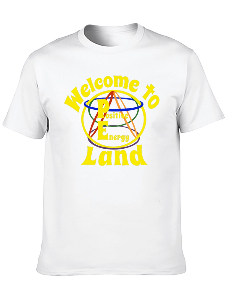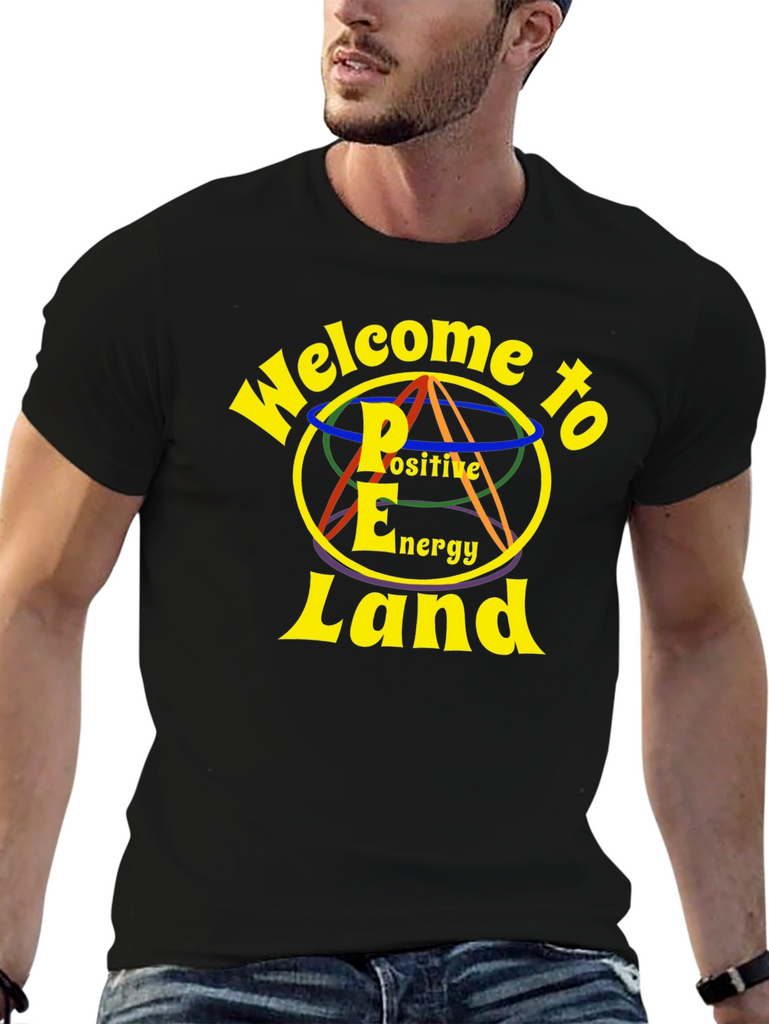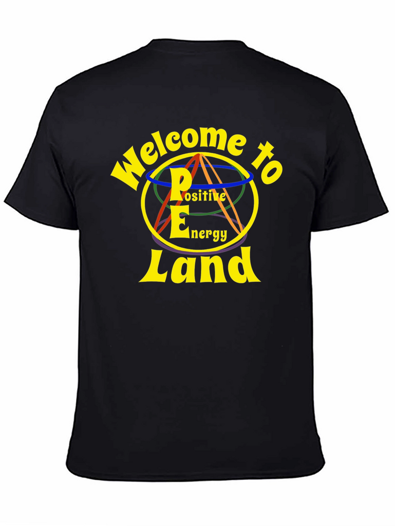Embrace positive vibes with this eye-catching black t-shirt. Featuring the vibrant text "Welcome to Positive Energy Land" in bold yellow, this tee is sure to turn heads. The design includes a colorful geometric symbol with a yellow circle and various line segments. Made from a comfortable material, this t-shirt is perfect for casual wear, concerts, or any place you want to spread good energy and make a bold statement. Show off your positive spirit with this unique and stylish tee.
