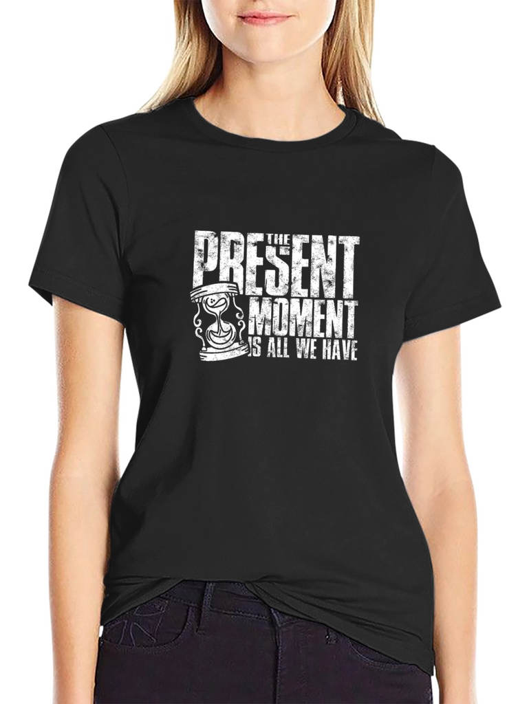 Embrace the now with this stylish black t-shirt. Featuring a bold white graphic design with an hourglass and the powerful message "The Present Moment Is All We Have." This tee is perfect for everyday wear and making a statement. The classic fit and soft fabric ensure all-day comfort. Made from high-quality materials, this shirt is both durable and fashionable. Ideal for casual outings, workouts, or lounging at home. Show off your mindful side and inspire others with this unique and meaningful t-shirt.