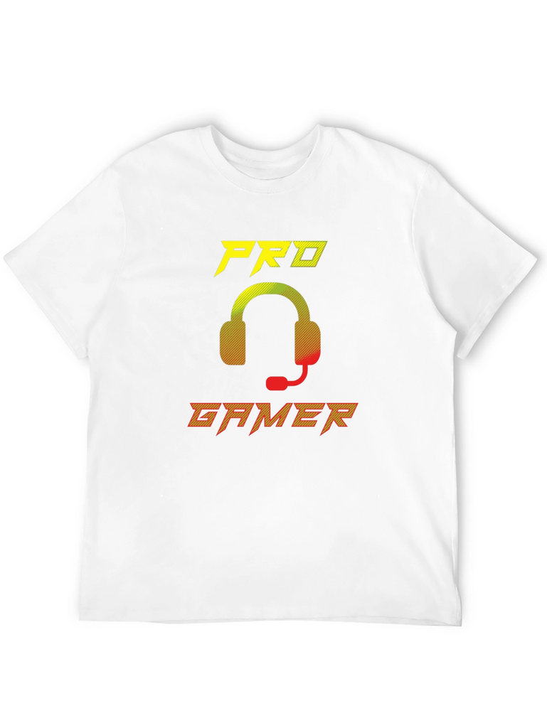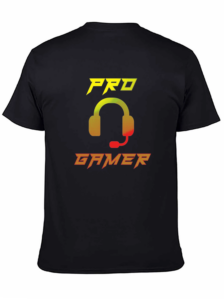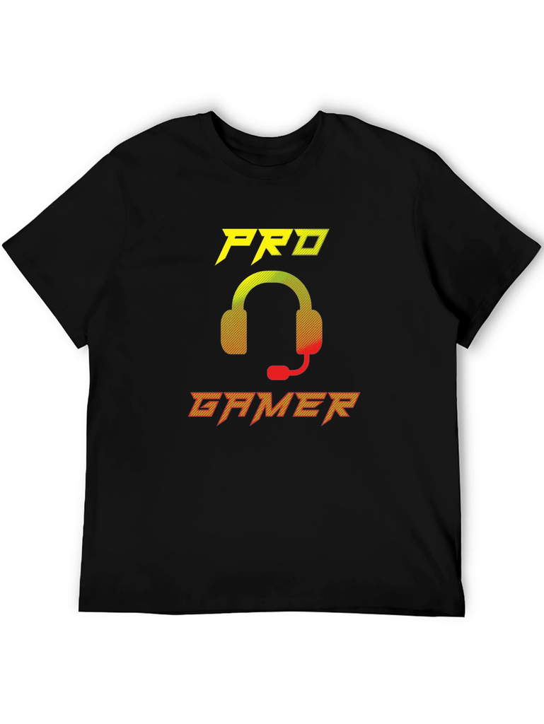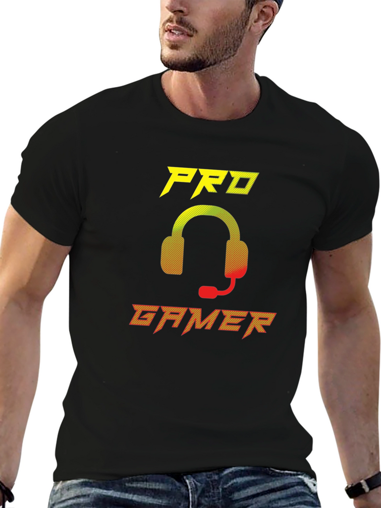 Show off your gaming skills with this stylish black t-shirt. This eye-catching tee features a vibrant 'Pro Gamer' graphic with a cool headset design in yellow to red gradient. Made from a soft, breathable fabric, this shirt offers all-day comfort whether you're conquering virtual worlds or hanging out with friends. Perfect for gamers of all levels, this t-shirt is a must-have addition to your wardrobe. Makes a great gift for the gamer in your life. Available in various sizes.