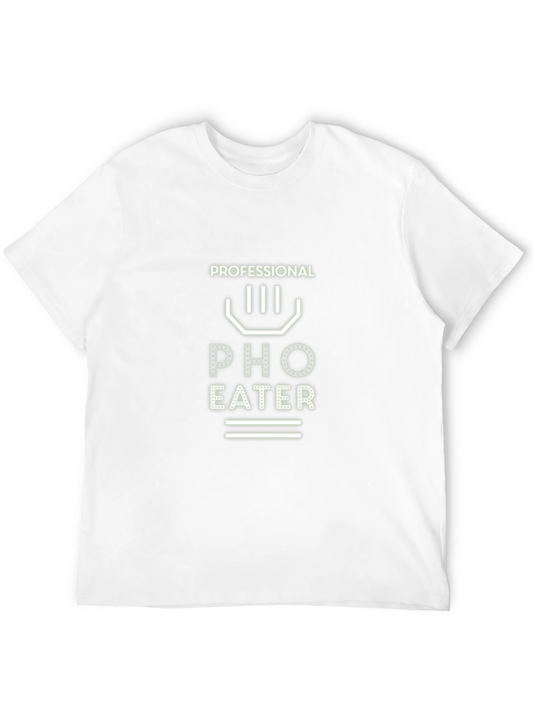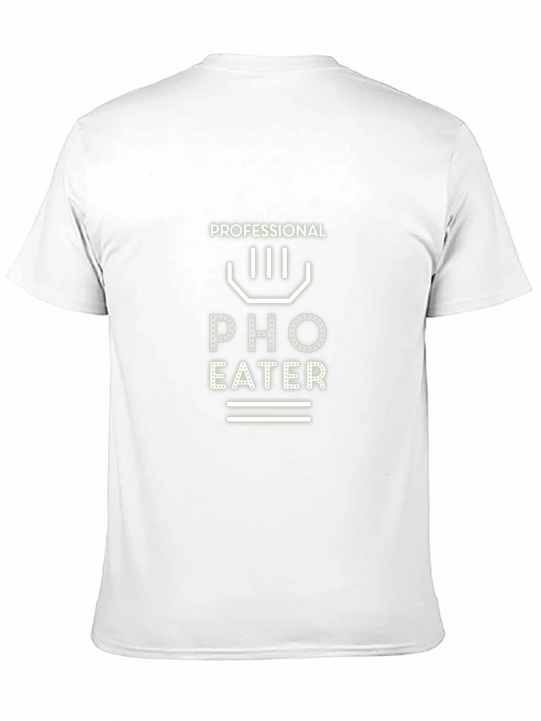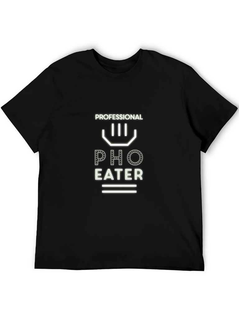 Showcase your love for delicious Vietnamese pho with this stylish black t-shirt. The bold graphic design features the words "PROFESSIONAL PHO EATER" in a unique, eye-catching font. Made from comfortable, breathable fabric, this tee is perfect for casual wear or a night out at your favorite pho restaurant. The minimalist design makes it versatile for pairing with jeans, shorts, or even dressing it up with a blazer. A must-have for any pho enthusiast!