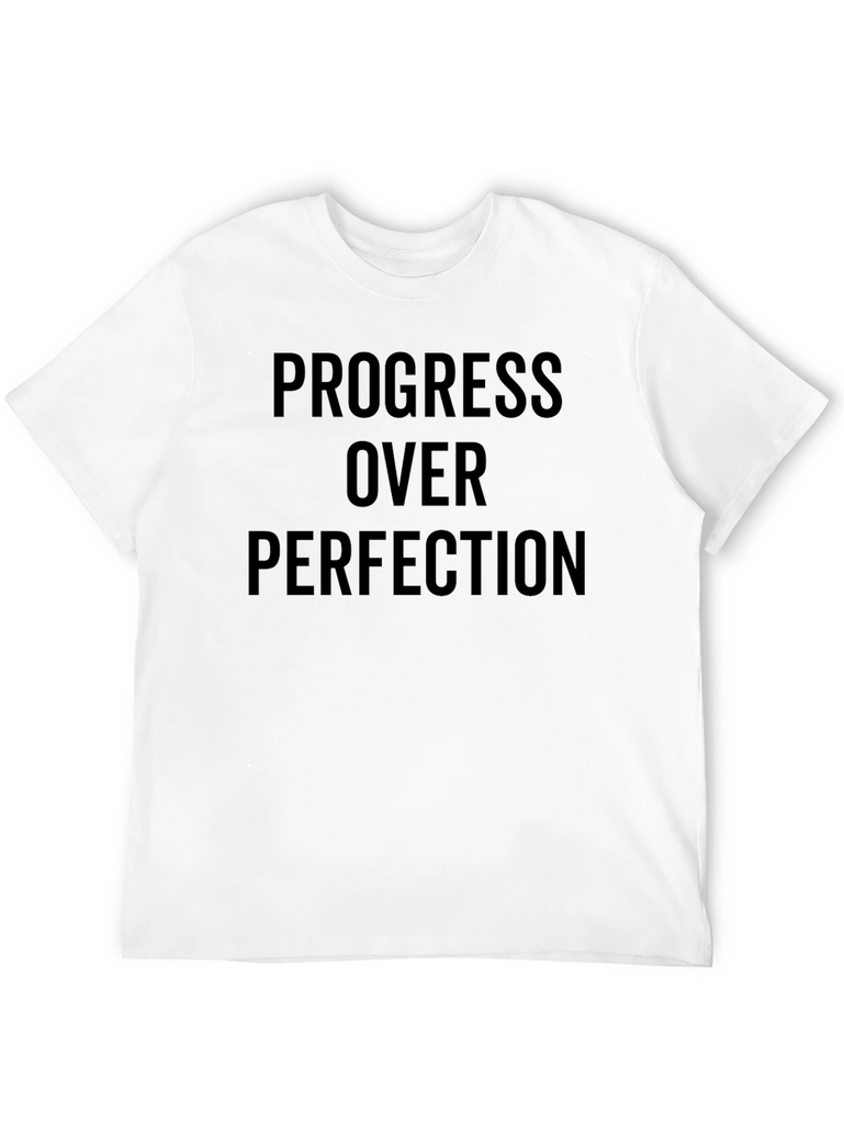 Embrace growth with this stylish black t-shirt. Featuring the powerful message "Progress Over Perfection" in bold print, this tee is perfect for anyone on a journey of self-improvement. The classic black color offers versatility, easily pairing with jeans, shorts, or joggers. The shirt appears to be made from a soft, breathable fabric, ensuring all-day comfort. Wear it to the gym, out with friends, or simply while relaxing at home as a reminder to focus on progress, not unattainable perfection. It's more than just a shirt, it's a mindset. A great gift for yourself or someone you care about.