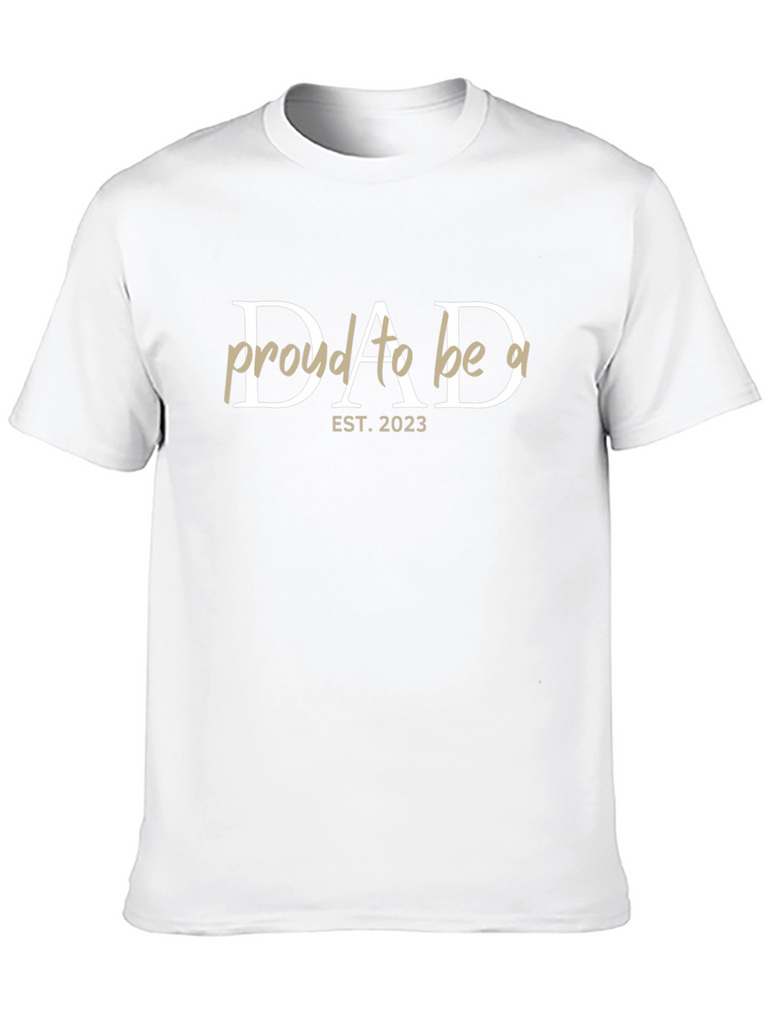 Celebrate fatherhood with this stylish black t-shirt! Featuring the text "proud to be a Dad" and "EST. 2023," it's the perfect way to commemorate the year of becoming a dad. Made from comfortable materials, this tee offers a great fit and casual style. Ideal for everyday wear, family outings, or as a thoughtful gift for new fathers. Show off your pride in style with this unique and meaningful t-shirt.