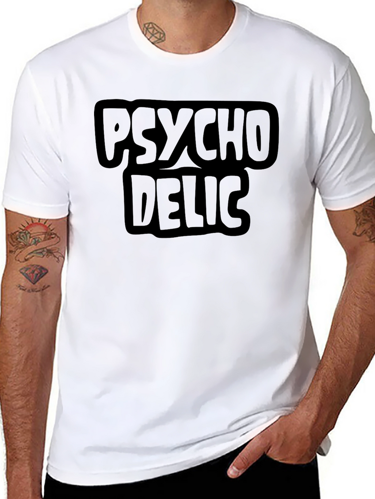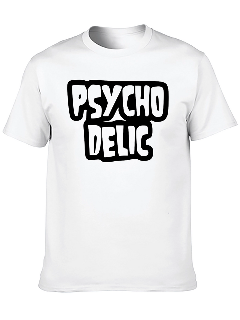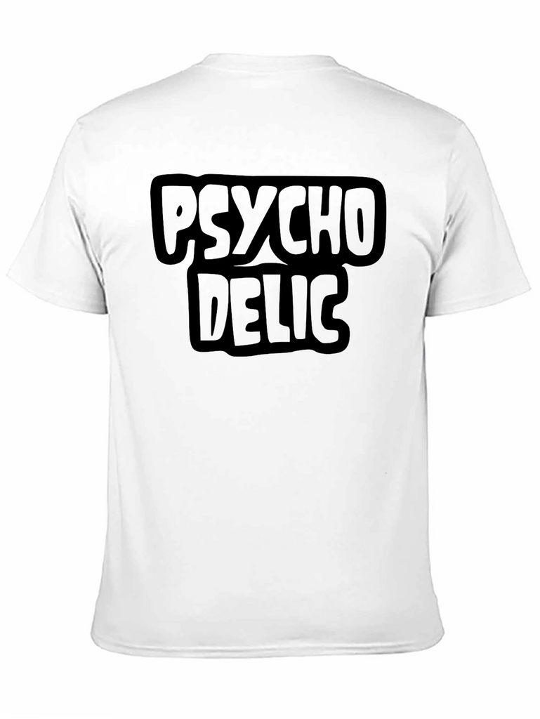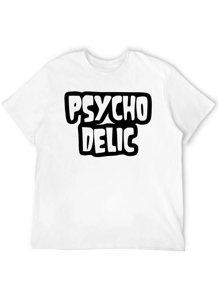 Rock a unique look with this bold, black t-shirt featuring a standout "Psycho Delic" graphic. The lettering is a standout on the tee. Made from comfortable, breathable fabric, this tee offers a relaxed fit that's perfect for everyday wear. The classic crew neck design makes it easy to style with jeans, shorts, or your favorite jacket. Whether you're hitting the streets or chilling with friends, this graphic tee is a cool choice to express your style. Embrace the bold graphic and add some edge to your wardrobe with this statement t-shirt!