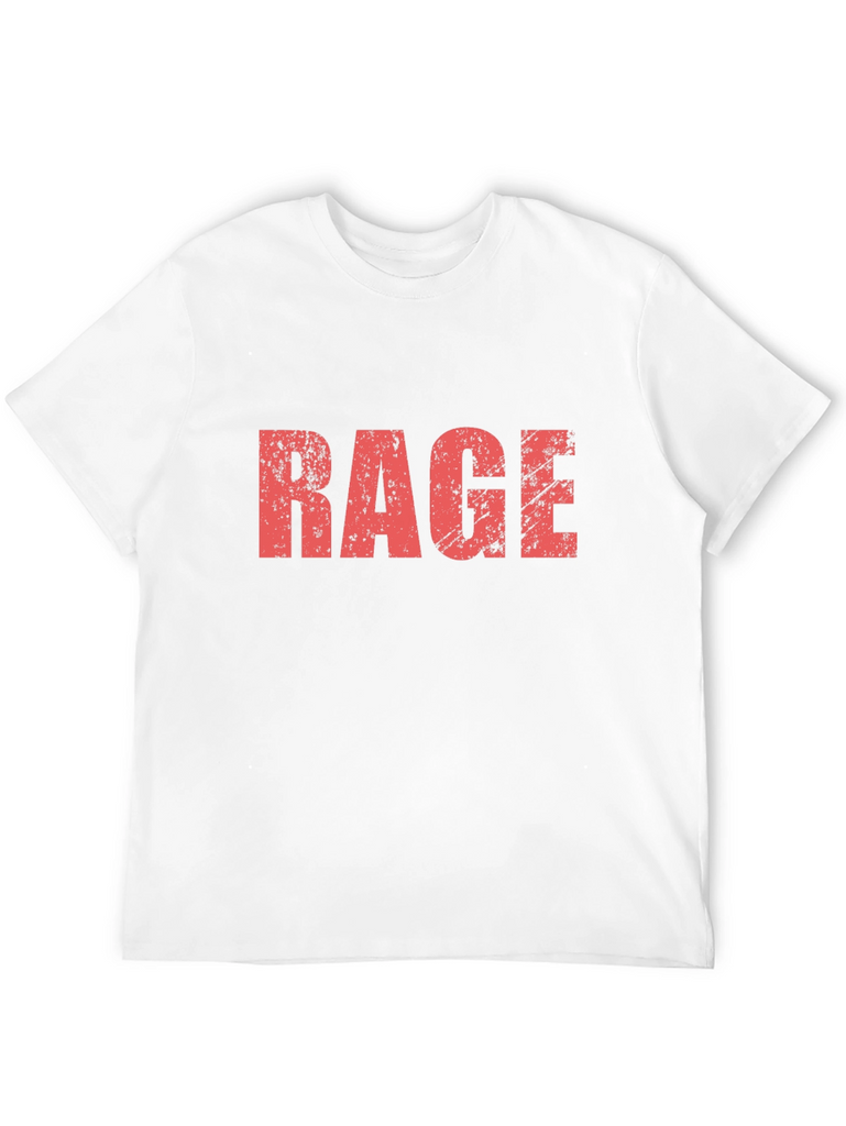 Show your attitude with this bold 'RAGE' graphic t-shirt. The shirt features a striking, distressed red print that stands out against the classic black fabric. Made from comfortable materials, it's perfect for everyday wear or making a statement at events. Whether you're expressing your intensity or simply love edgy designs, this tee is a great fit. Pair it with jeans or casual pants for a complete look. Get ready to turn heads with this standout piece. Makes a great gift for friends and family!