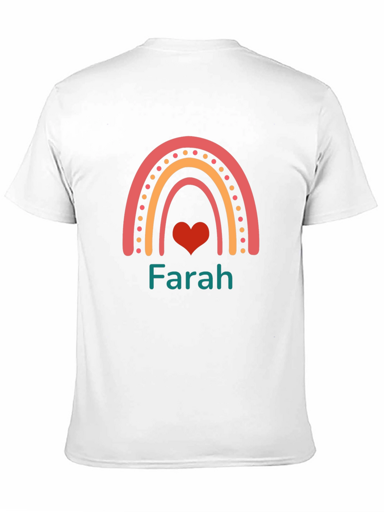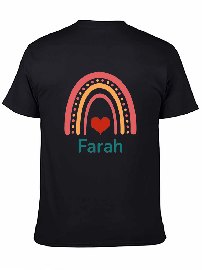 Show your love with this adorable personalized t-shirt! Featuring a colorful rainbow graphic with a heart at its center and a name underneath, this tee is perfect for everyday wear. The vibrant design pops against the classic black background, making it a stylish choice for any casual occasion. Made from a comfortable material, it's ideal for expressing your unique style. The personalized name makes it a thoughtful gift for friends, family, or yourself. Dress it up or down, this t-shirt will become a staple in your wardrobe.