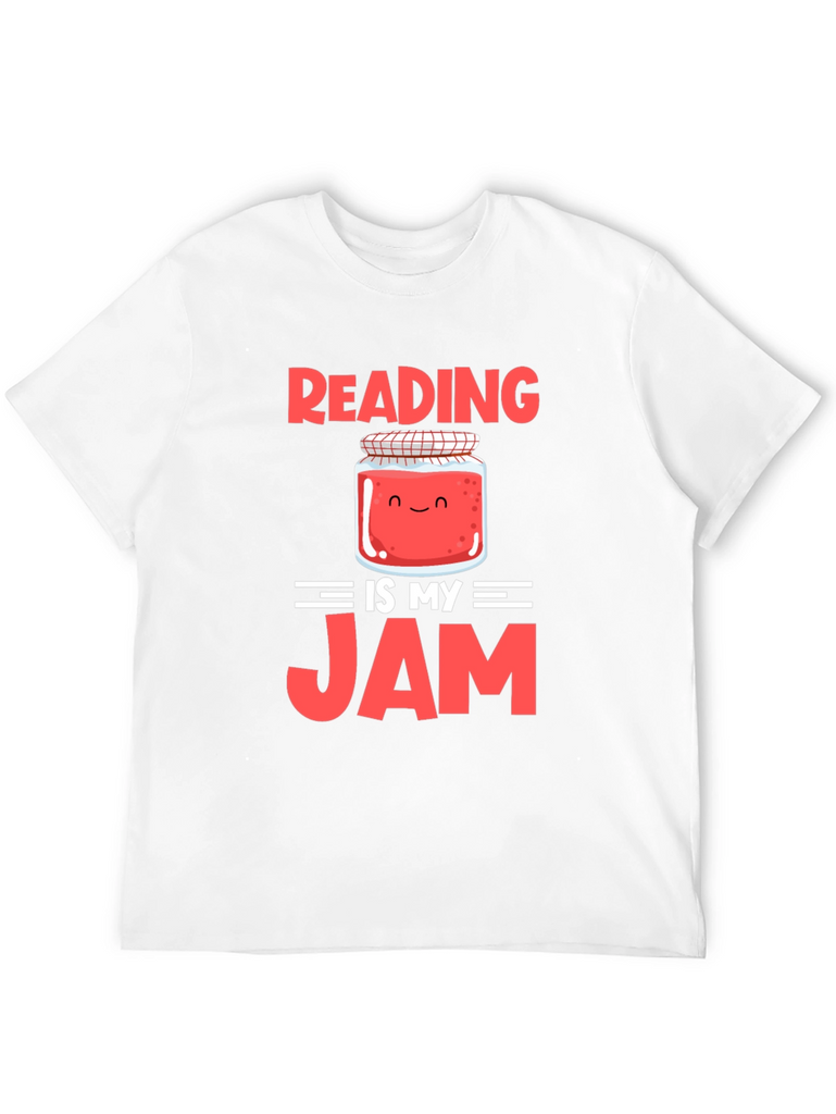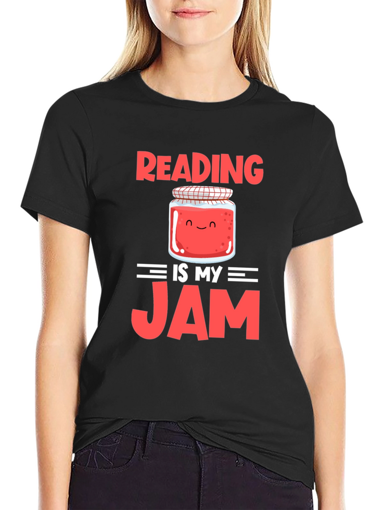 Show off your love for reading with this fun and unique t-shirt! The black tee features a playful design with the text "READING" above an adorable jam jar illustration, followed by "IS MY" and then "JAM" below. The design is vibrant and eye-catching. This comfortable tee is perfect for bookworms, librarians, and anyone who enjoys a good read. Made from a soft, breathable fabric, it's ideal for casual wear, library visits, or book club meetings. Grab this tee and let everyone know that reading is your "jam"!