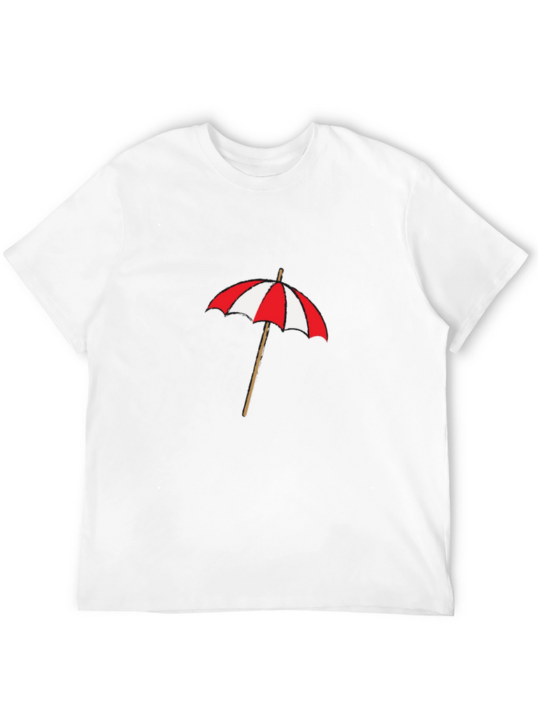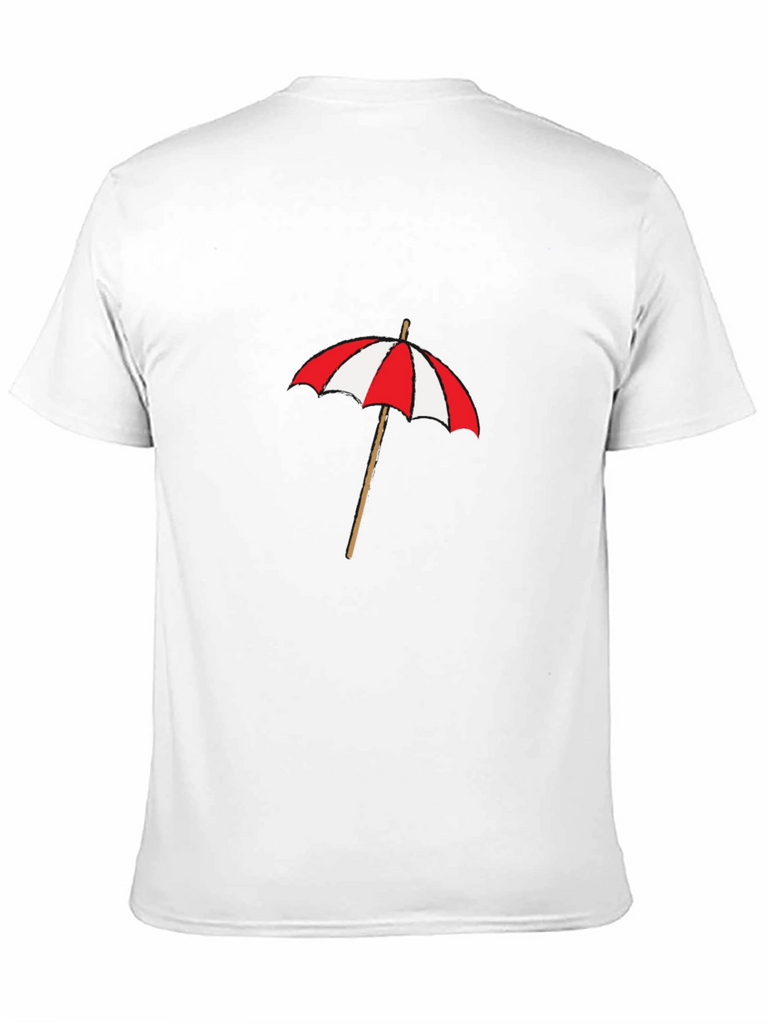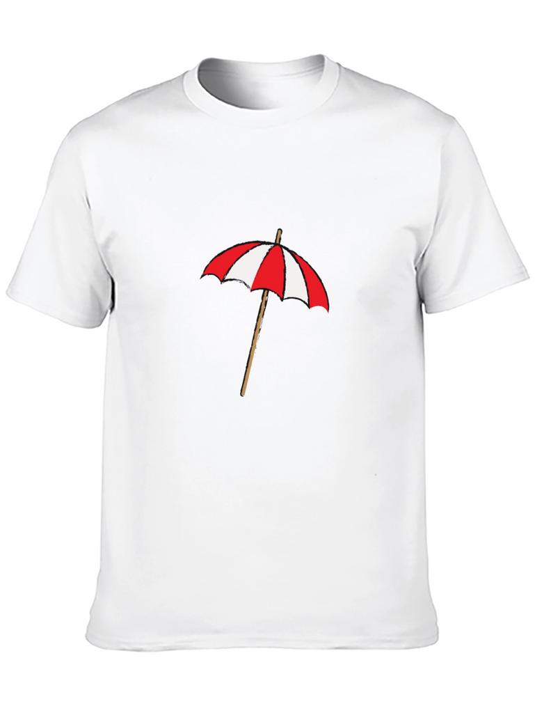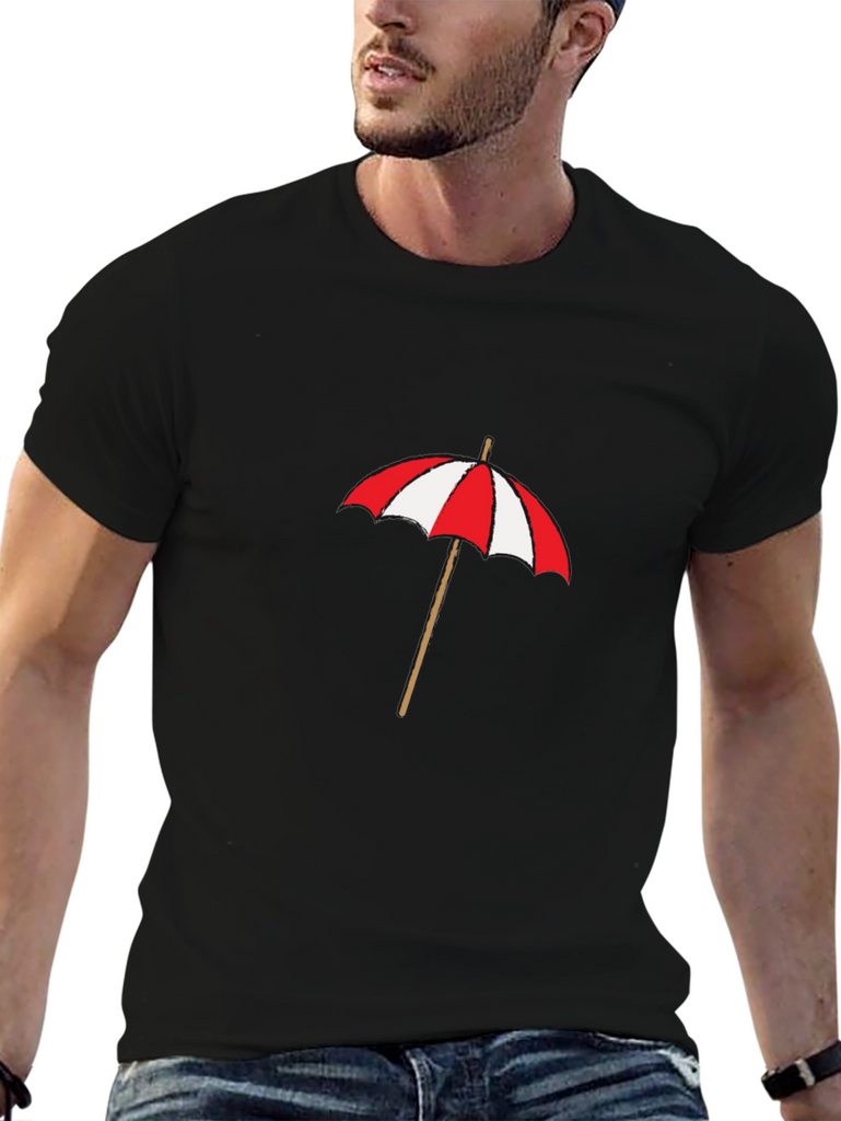 Stay stylish and protected from the elements with this eye-catching black T-shirt featuring a vibrant red and white umbrella design. Made from a soft and comfortable fabric, this tee is perfect for everyday wear. The unique umbrella graphic adds a touch of whimsy and individuality to your outfit. Whether you're strolling along the beach or simply running errands, this T-shirt will keep you looking cool and feeling great. Its classic fit makes it a versatile addition to any wardrobe.