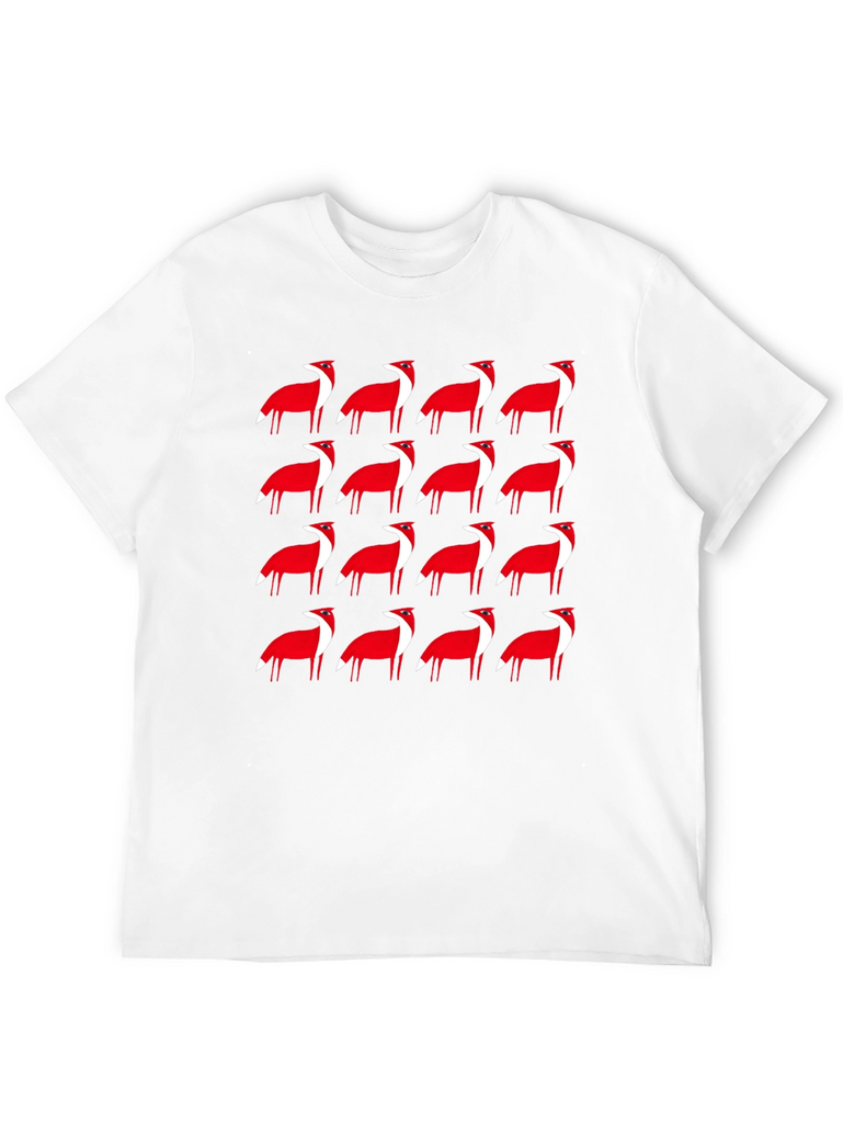 Showcase your unique style with this striking black t-shirt, featuring a repeating pattern of vibrant red fox silhouettes with minimalist white accents. Made from what appears to be a comfortable, breathable cotton blend, this tee offers a relaxed fit that's perfect for everyday wear. The eye-catching design adds a touch of whimsy to any outfit, making it a great conversation starter. Dress it up with a blazer or keep it casual with jeans – either way, you'll be turning heads with this statement piece. Ideal for animal lovers and those who appreciate bold, modern graphics. A versatile addition to any wardrobe.
