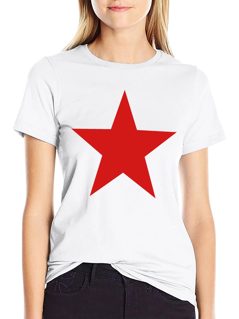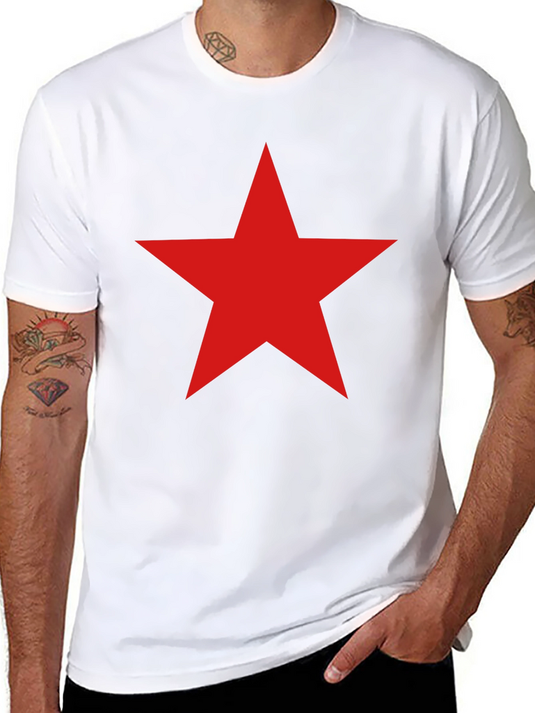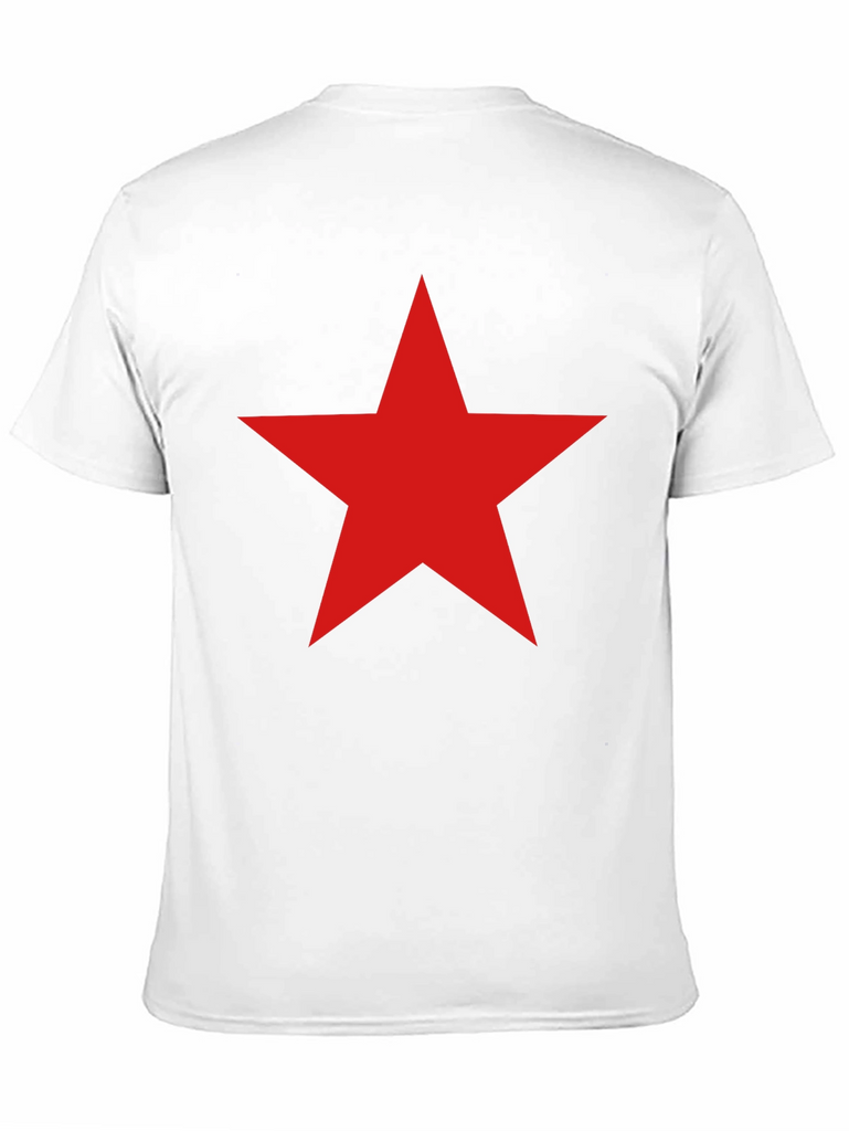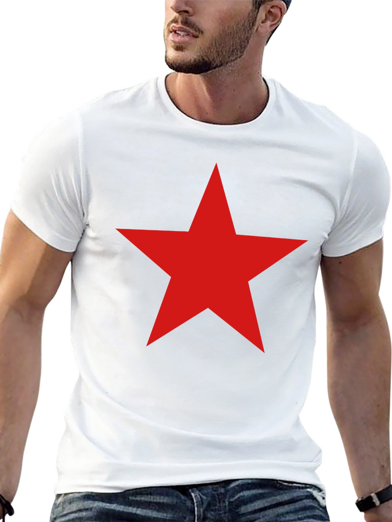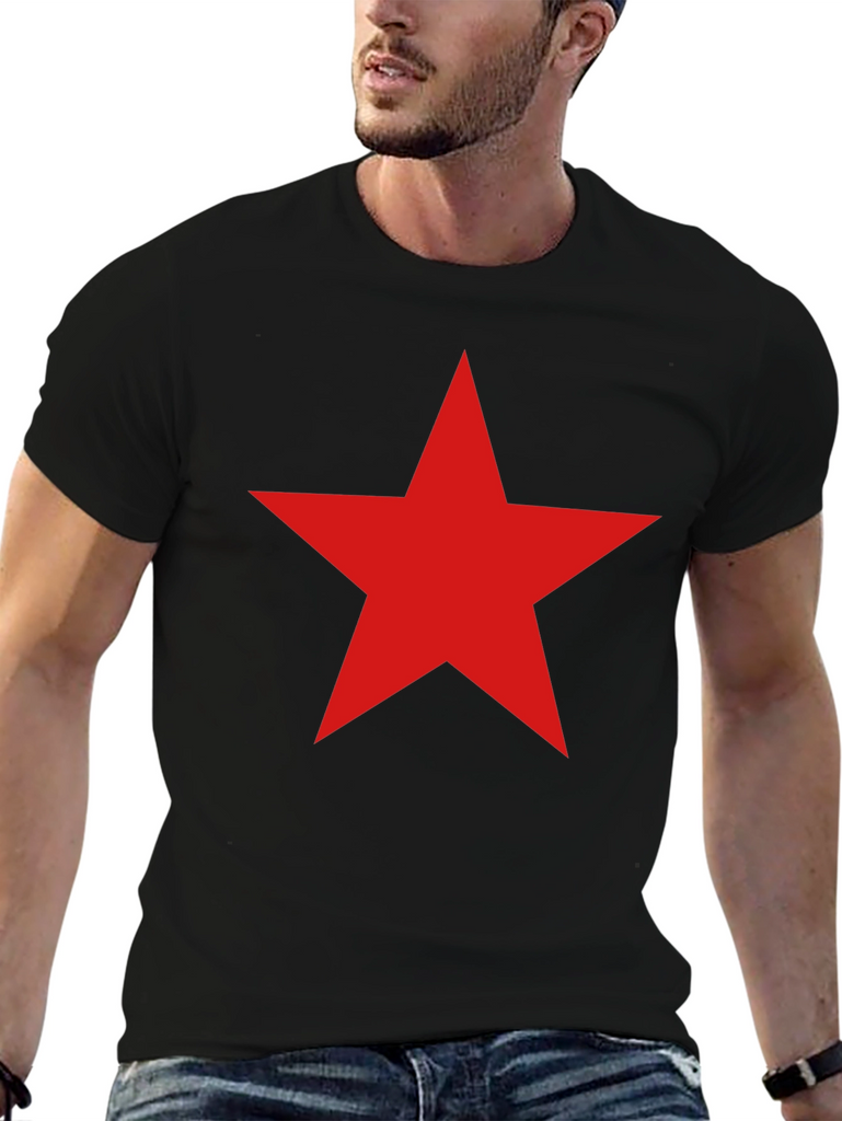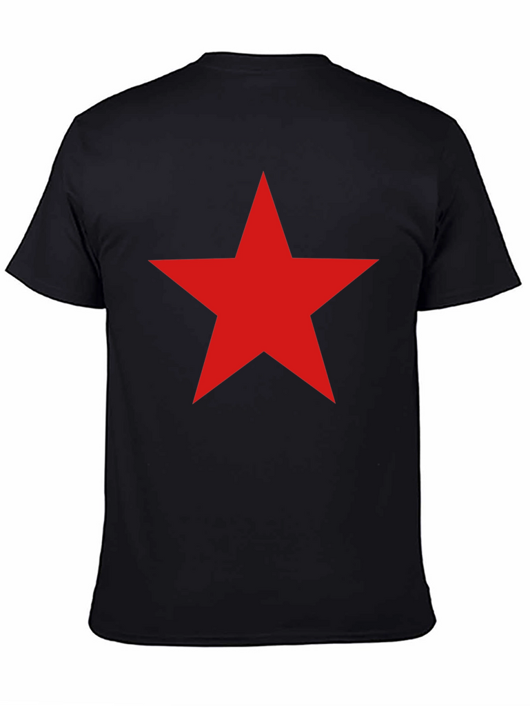 Show your style with this classic black t-shirt featuring a bold red star. The short-sleeved tee offers a comfortable fit and a striking graphic design. Made from soft, breathable fabric, this shirt is perfect for casual wear, concerts, or making a statement. Pair it with jeans or shorts for an easygoing look. This versatile tee combines comfort with a unique style, making it a must-have addition to any wardrobe.