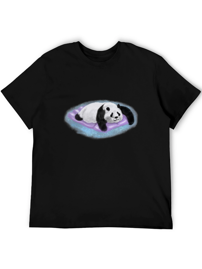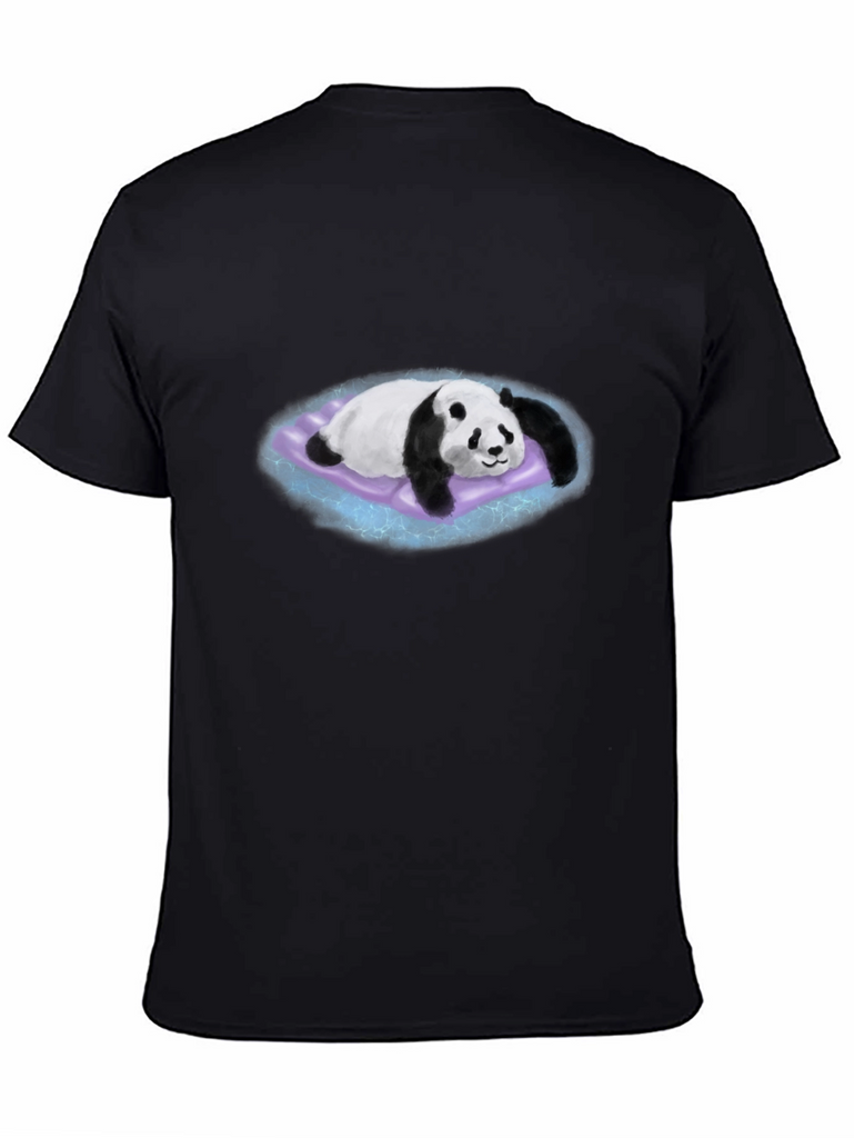 This stylish black t-shirt features a cute panda bear lying comfortably on a pillow. The panda design is eye-catching and unique, making it a great conversation starter. Made from a soft and breathable fabric, this t-shirt offers all-day comfort. Its classic fit is perfect for casual wear, whether you're lounging at home or heading out with friends. The high-quality print ensures the design stays vibrant wash after wash. Add a touch of whimsy to your wardrobe with this charming panda tee.