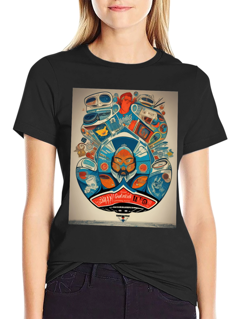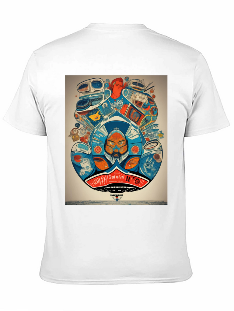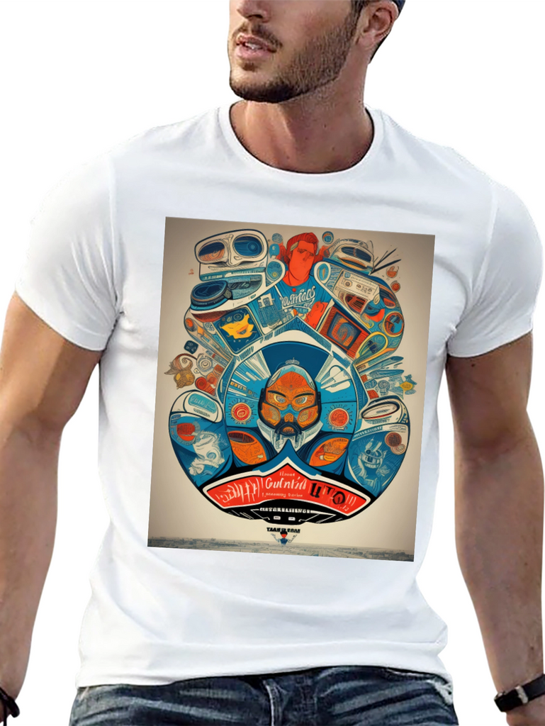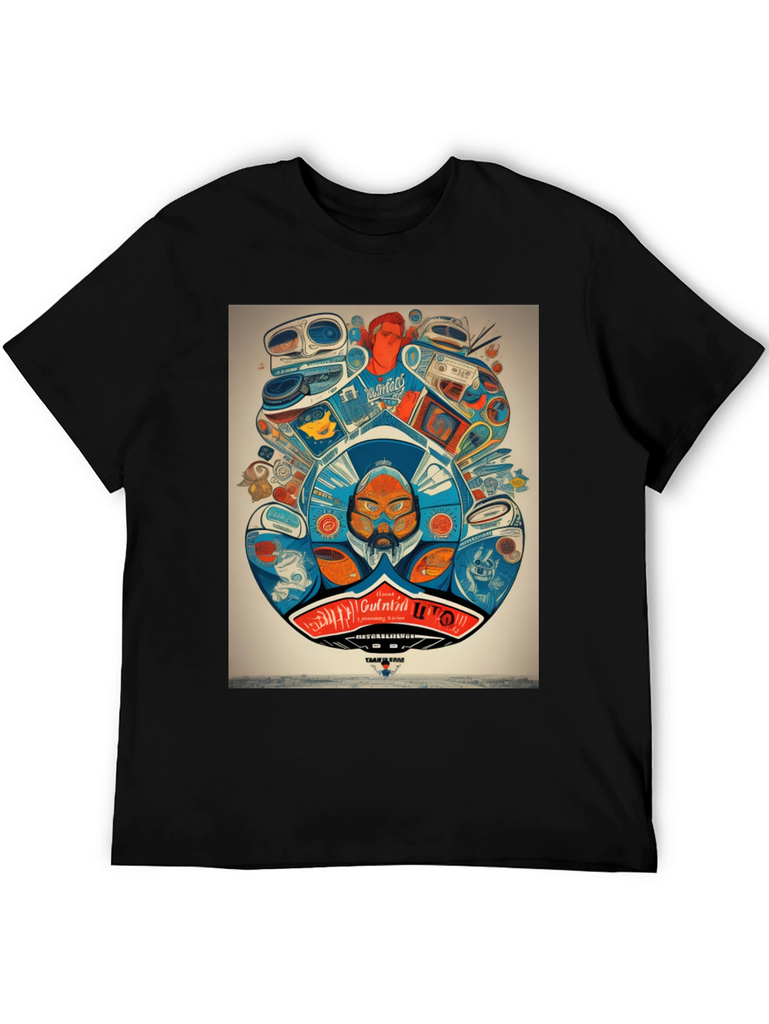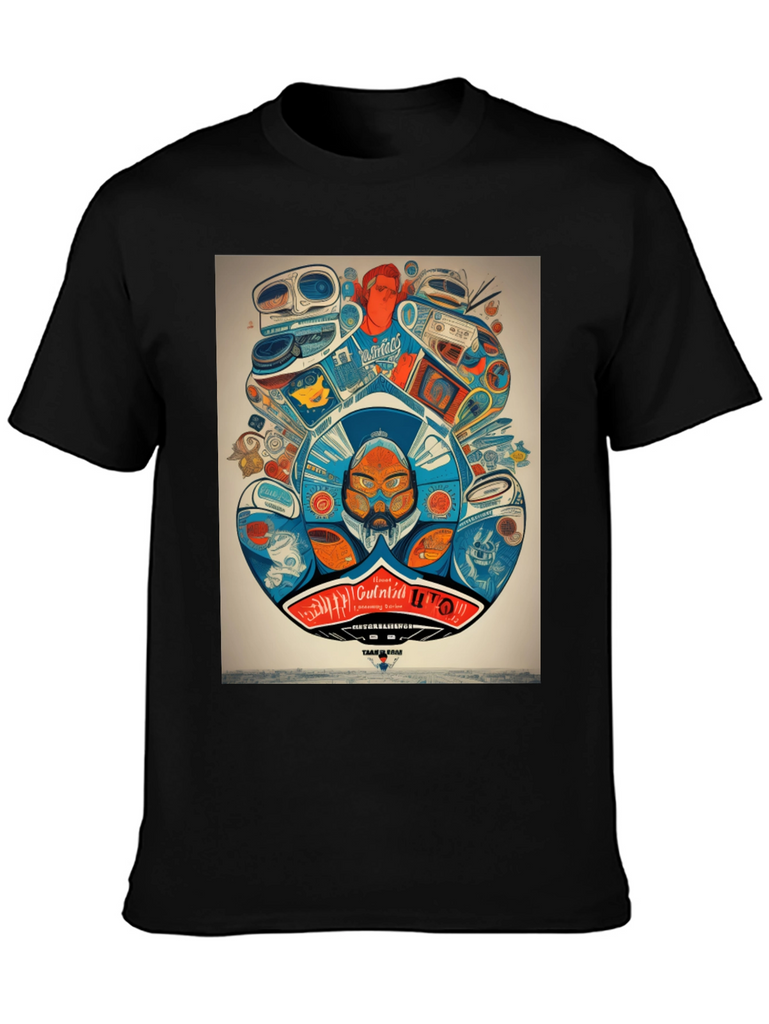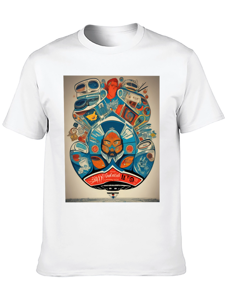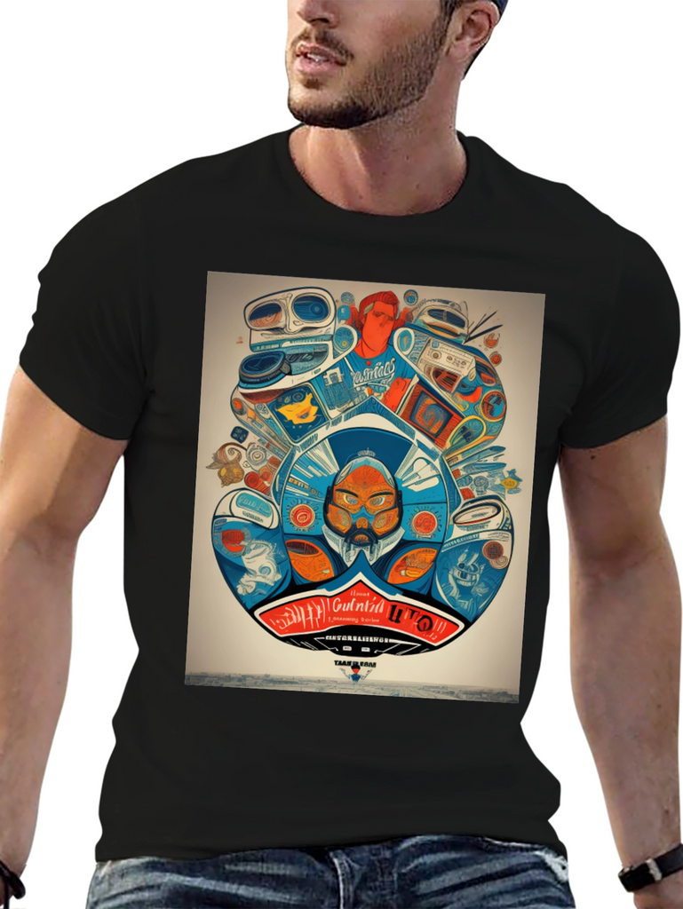 Step back in time with this unique graphic tee! Featuring a vibrant and intricate design of retro audio equipment like boomboxes and turntables, this shirt is a must-have for music lovers and vintage enthusiasts. The detailed artwork showcases a playful mix of colors and quirky characters, creating a bold statement piece. Made from a comfortable and breathable fabric, this t-shirt is perfect for everyday wear. Show off your love for classic tunes and stand out from the crowd with this eye-catching design. Ideal for casual outings, concerts, or simply expressing your unique style.