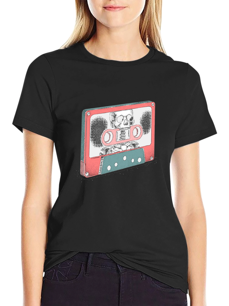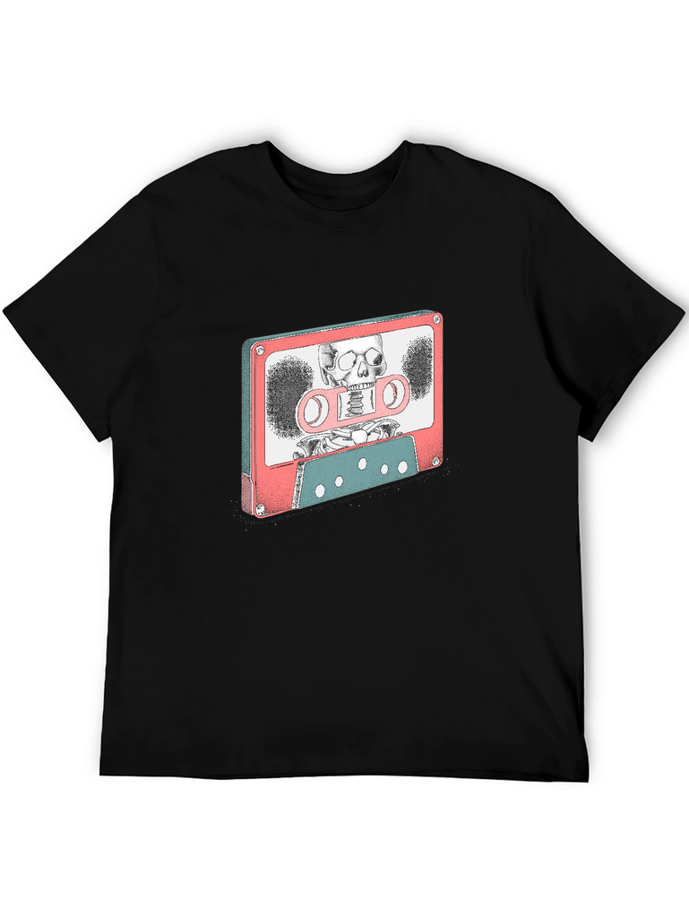 Embrace vintage vibes with this unique t-shirt featuring a skeleton design inside a retro cassette tape graphic. This black tee offers a comfortable fit and a classic look. The eye-catching print blends nostalgia with edgy style, making it a standout piece for any casual wardrobe. Ideal for music lovers and those with a penchant for vintage aesthetics, this t-shirt is sure to turn heads. Perfect for everyday wear, concerts, or simply expressing your unique personality. Upgrade your style with this cool and expressive t-shirt today!