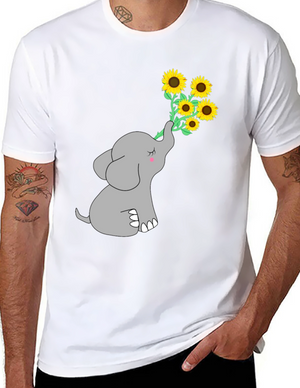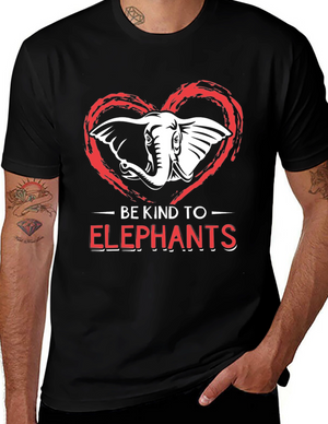 This black t-shirt features a retro-inspired design with a silhouette of an elephant set against colorful vertical stripes in shades of orange, brown, beige, and blue. The elephant design is a statement piece, perfect for animal lovers and those who appreciate vintage aesthetics. Made from a soft, comfortable fabric, this t-shirt is ideal for casual wear, whether you're running errands, hanging out with friends, or simply relaxing at home. It's a stylish and unique addition to any wardrobe, easily paired with jeans, shorts, or skirts for a versatile look. Show off your unique style with this eye-catching retro elephant tee!