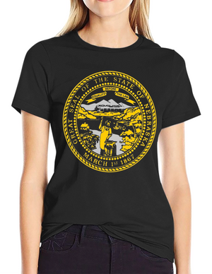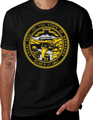 Show your state pride with this stylish retro Nebraska tee! This classic black t-shirt features a distressed, vintage-inspired "Nebraska" graphic in bold, layered lettering. The graphic uses a cool palette of cream, red, orange and teal stripes for a groovy 70's vibe. Made from a comfortable and durable fabric, this shirt is perfect for everyday wear, showing off your Nebraska roots, or gifting to a fellow Cornhusker. Pair it with jeans or shorts for a casual, laid-back look. The unique design is sure to turn heads and spark conversation. Add this must-have piece to your wardrobe today!