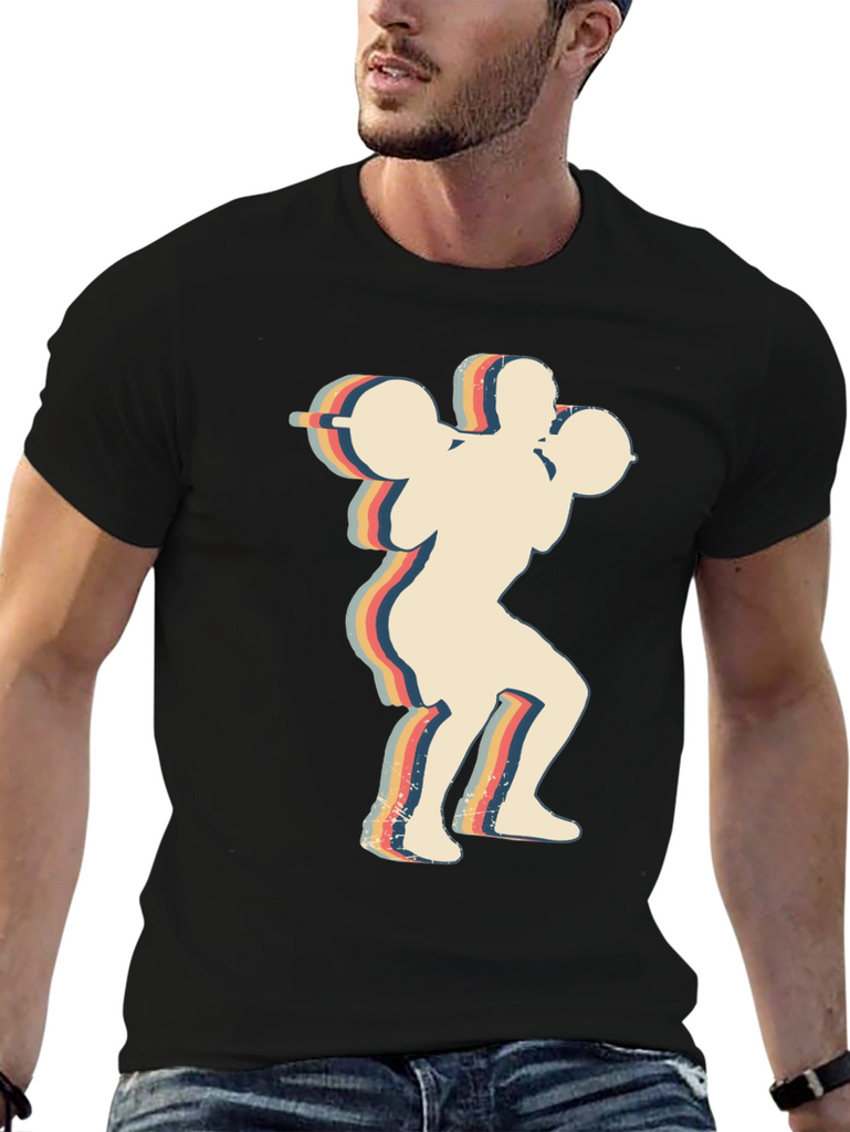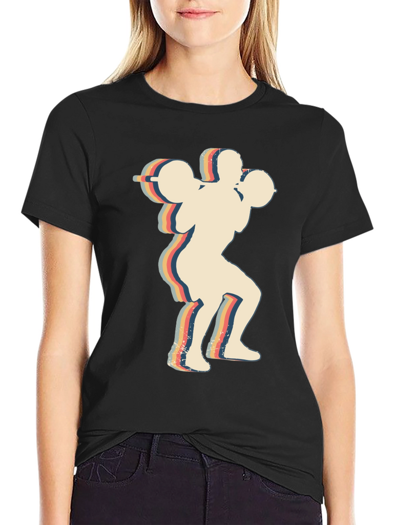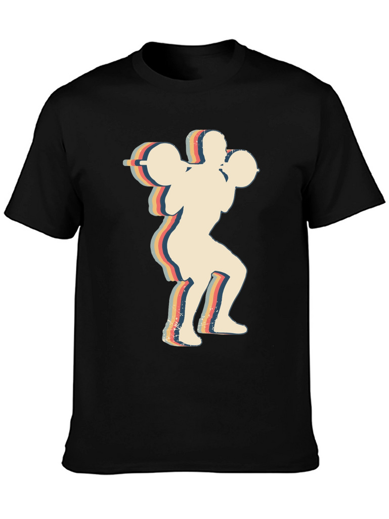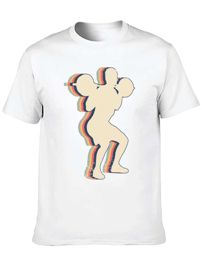 Show off your love for fitness with this vintage-inspired weightlifter t-shirt! Featuring a unique retro design of a person doing a squat with a barbell, this shirt is perfect for gym enthusiasts and lifters. The graphic is eye-catching. This tee is ideal for workouts, casual wear, or as a gift for the fitness-minded individual in your life. A statement of strength and style, this unique shirt is a must-have for those who are ready to level up their apparel game.
