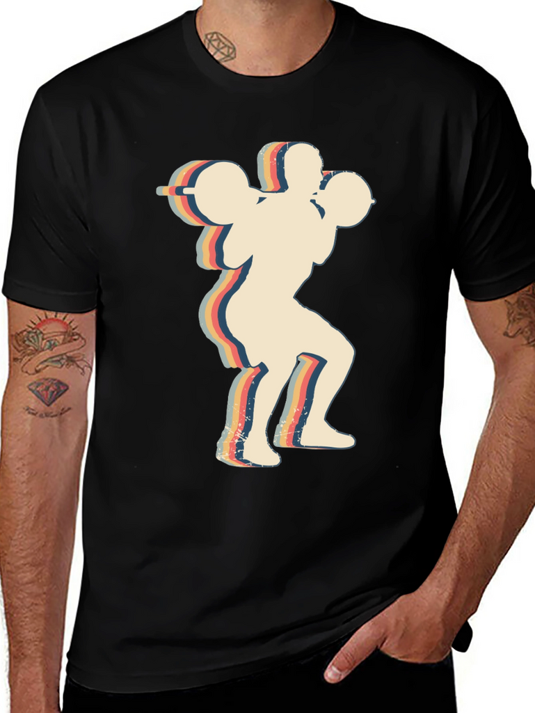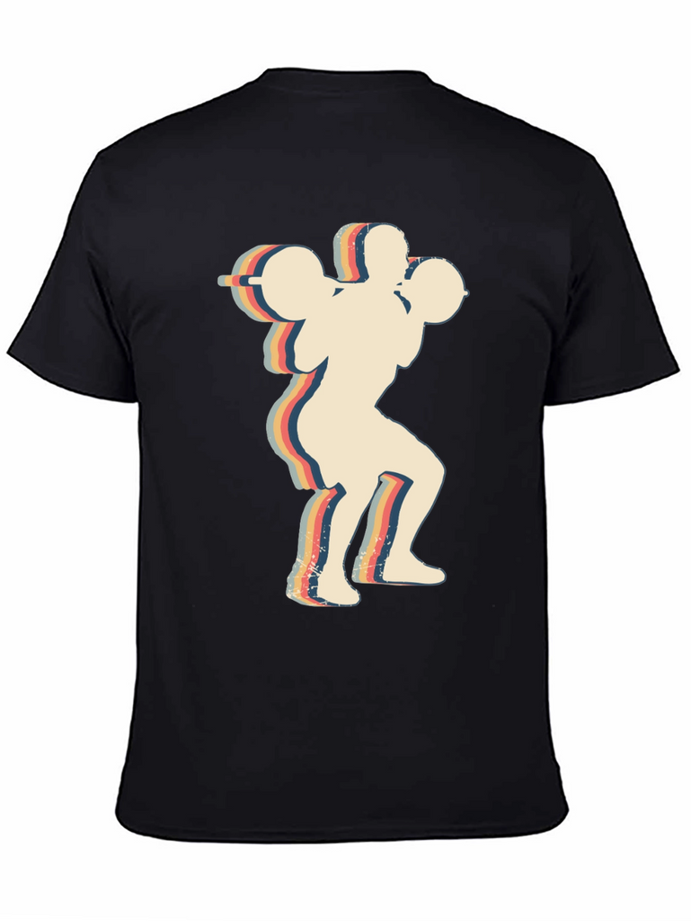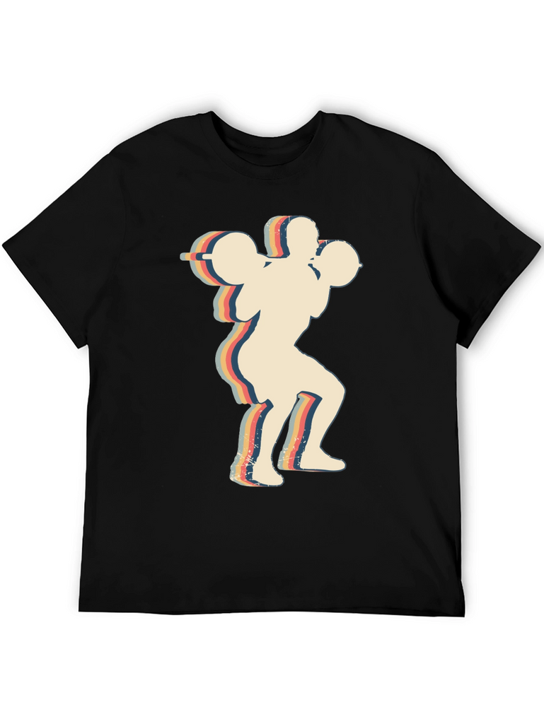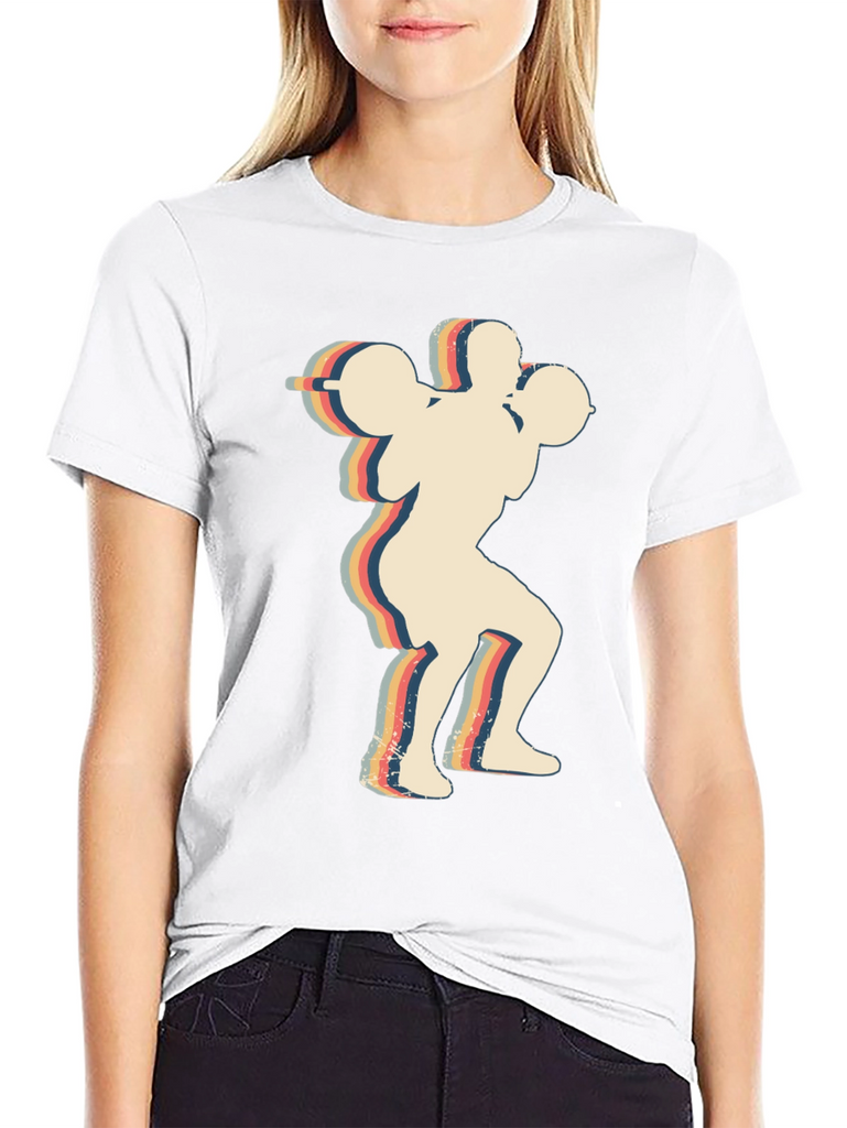 Show off your love for fitness with this vintage-inspired weightlifter t-shirt! Featuring a unique retro design of a person doing a squat with a barbell, this shirt is perfect for gym enthusiasts and lifters. The graphic is eye-catching. This tee is ideal for workouts, casual wear, or as a gift for the fitness-minded individual in your life. A statement of strength and style, this unique shirt is a must-have for those who are ready to level up their apparel game.