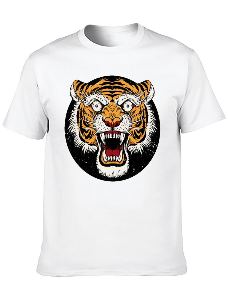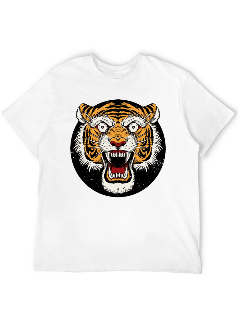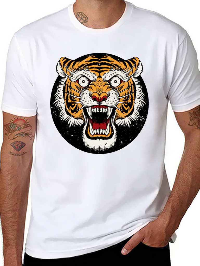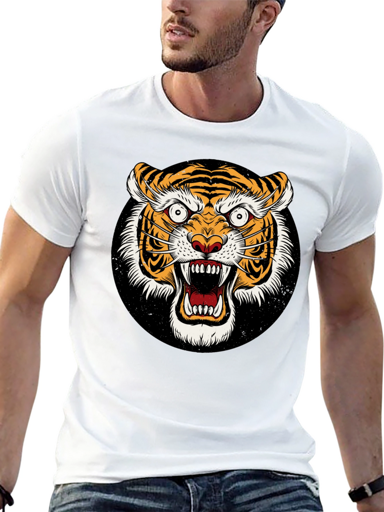 Unleash your wild side with this striking black t-shirt featuring a ferocious tiger graphic. The detailed design showcases a vibrant, roaring tiger face set against a black background. Made from a comfortable-looking fabric, this tee offers both style and comfort. The bold graphic is perfect for making a statement and expressing your unique personality. Ideal for casual wear, concerts, or adding an edgy touch to any outfit. Grab yours today and show off your fierce style!