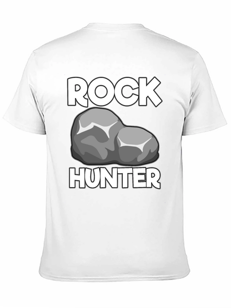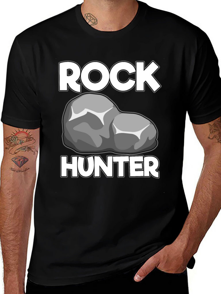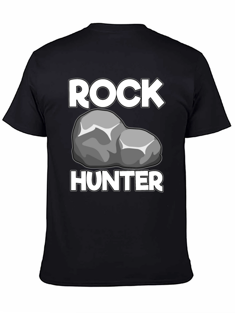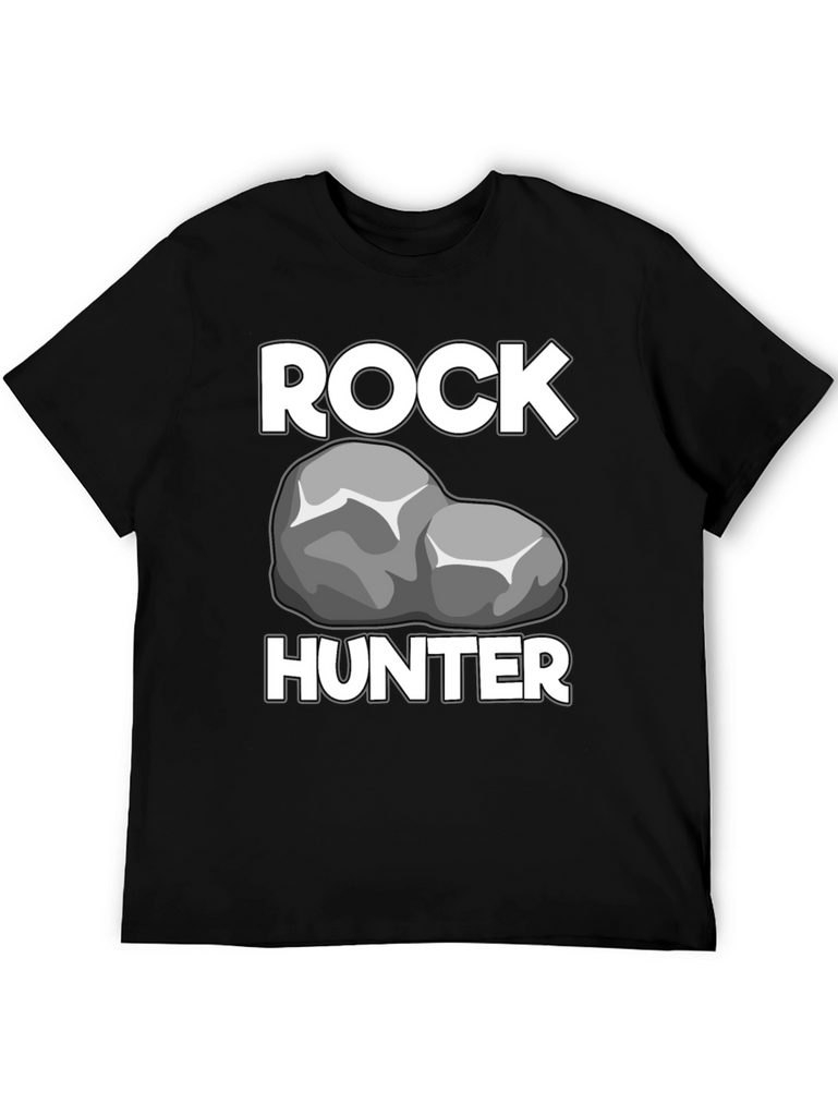 Show off your passion for geology with this Rock Hunter T-Shirt! Featuring a bold graphic of a rock between the words "ROCK" and "HUNTER" in a crisp white font, this shirt is perfect for any rockhound or geologist. The t-shirt has a classic crew neck and short sleeves, offering a comfortable and casual fit. The black fabric provides a sleek backdrop, making the white graphics stand out. Made from what appears to be a soft, breathable cotton blend, this t-shirt will quickly become a go-to piece in your wardrobe. Wear it proudly on your next outdoor adventure, at a rock and mineral show, or just around town to show off your love for rocks!