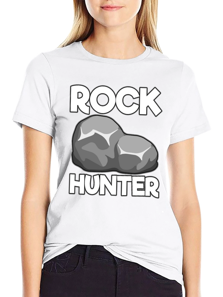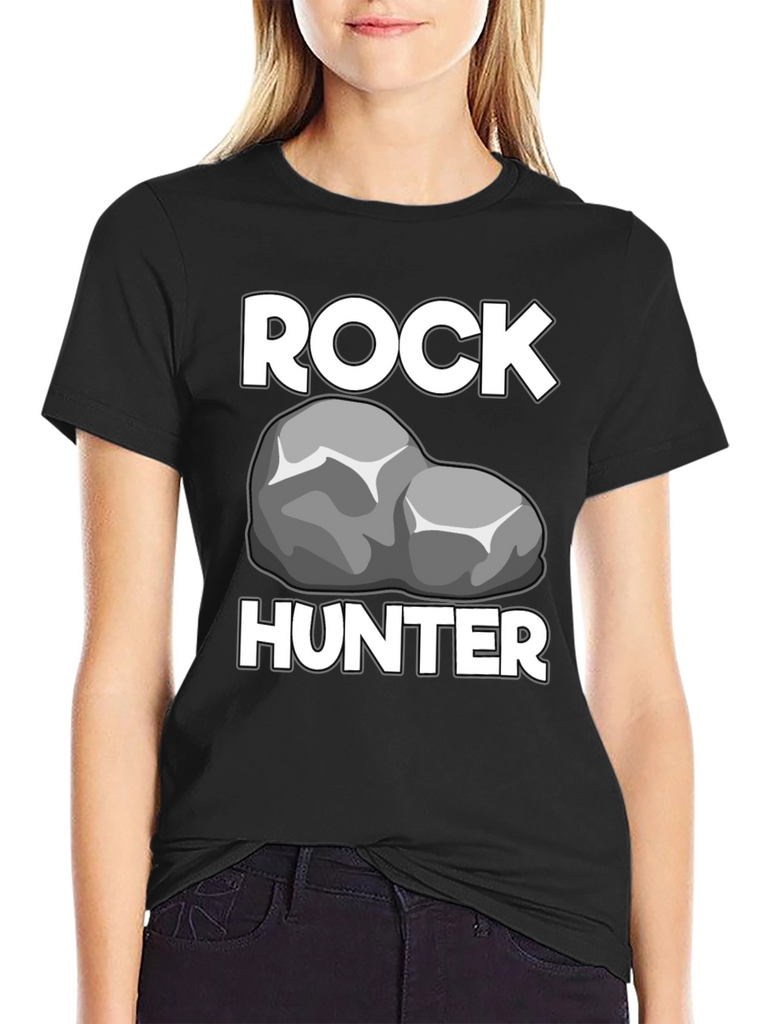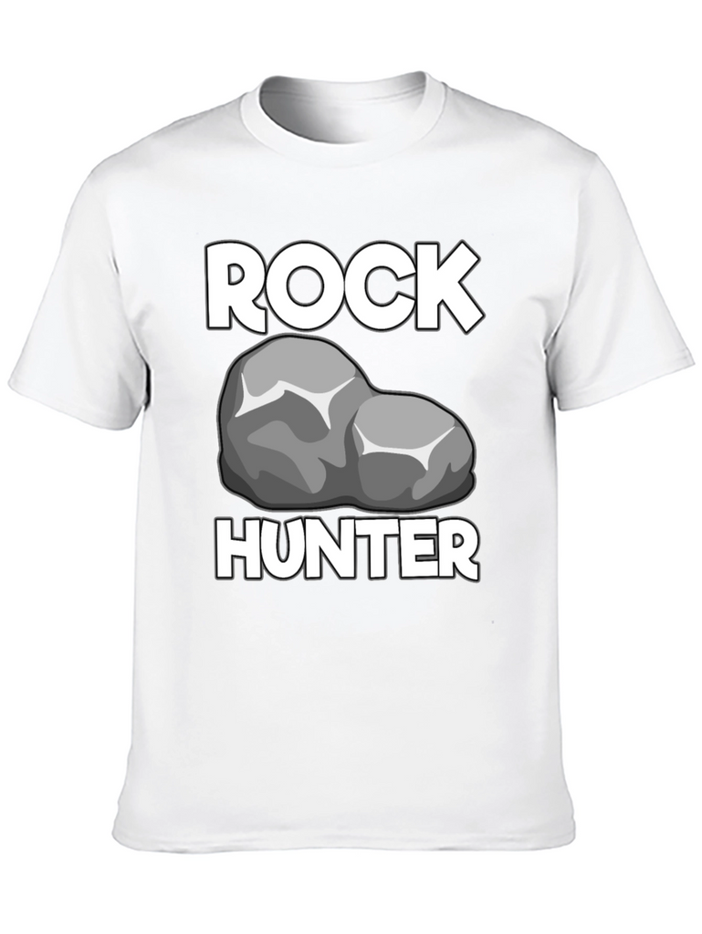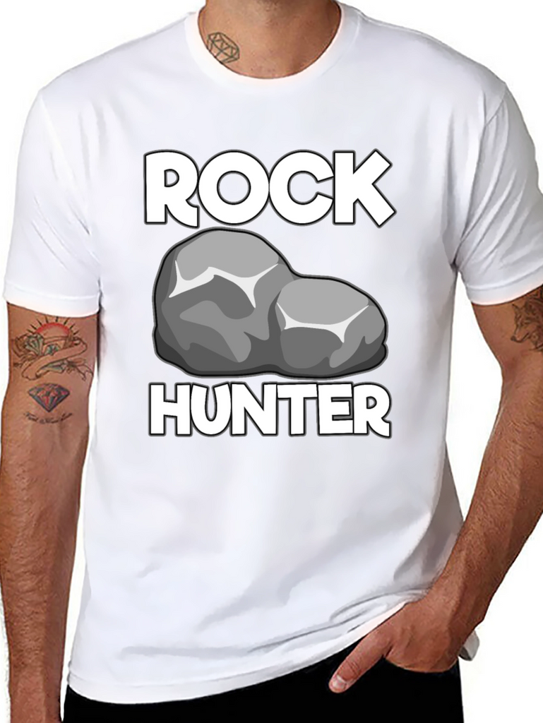Show off your passion for geology with this Rock Hunter T-Shirt! Featuring a bold graphic of a rock between the words "ROCK" and "HUNTER" in a crisp white font, this shirt is perfect for any rockhound or geologist. The t-shirt has a classic crew neck and short sleeves, offering a comfortable and casual fit. The black fabric provides a sleek backdrop, making the white graphics stand out. Made from what appears to be a soft, breathable cotton blend, this t-shirt will quickly become a go-to piece in your wardrobe. Wear it proudly on your next outdoor adventure, at a rock and mineral show, or just around town to show off your love for rocks!